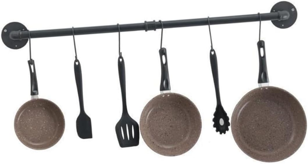 Package List 2 x rods 2 1 x connector 2 x bases 8 x screws 8 x expansion tubes 6 x hooks Features - Size: 60.00X13.00X5.00cm/23.58X5.11X1.97 inch. -Product Info:Pot lid stand - Material: Iron. - Color: Black. - Hangs your kitchen accessories, measuring cups, silicone spatulas, cookware set, coffee mugs and more to the hooks that easily slide. kitchen hooks for pans - Use it as kitchen organization unit for cooking utensils, as a bathroom organizer to hangs your towels, or in your entryway for hanging coats, bags and keys. Also, it can be a perfect rack for hanging your medals to the wall hooks kitchen wall mount utensil rack. - Great for storing and organizing pots, pans, kitchens utensils and keeping all within hands reach kitchen utensil racks with hooks. - Fine workmanship and creative appearance its popularity and practicality wall mounted pan holder. - This kitchen organization and storage unit will let with your supplies, not around them. Mount it under your kitchen cabinet or above the wall on your coffee machine to organize your kitchen with ease pot hanger wall mounted.Goods Informationkitchen wall rack Installed with screws, this storage rack can hold heavier items, such as frying pot.Wall Mount Pan Rack This is a pot rack.kitchen pot is made of premium iron material, for use.pot storage rack Designed with hooks, this storage hooks can be used to spatulas, pots, pot lids, washing cloths, etc