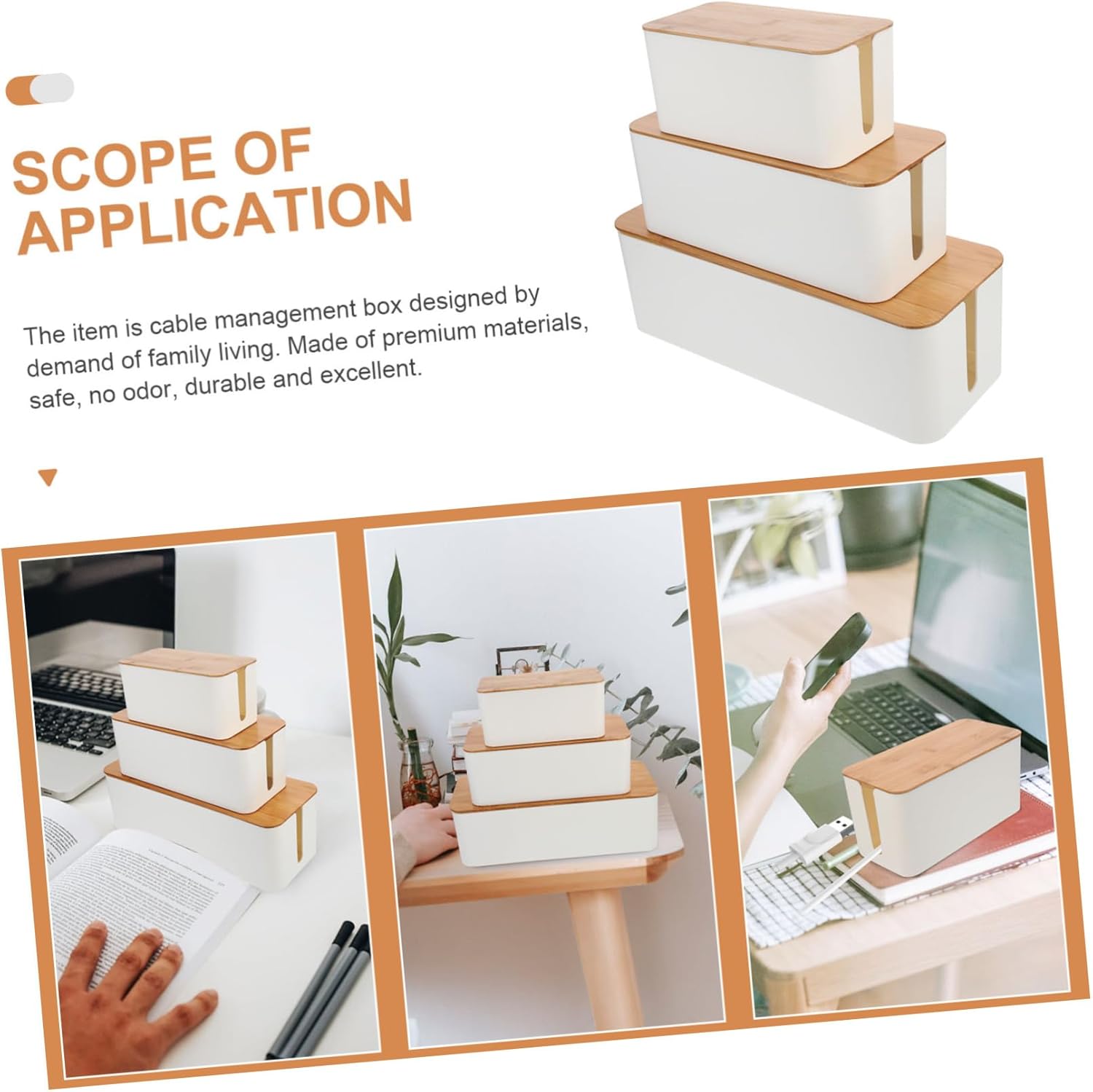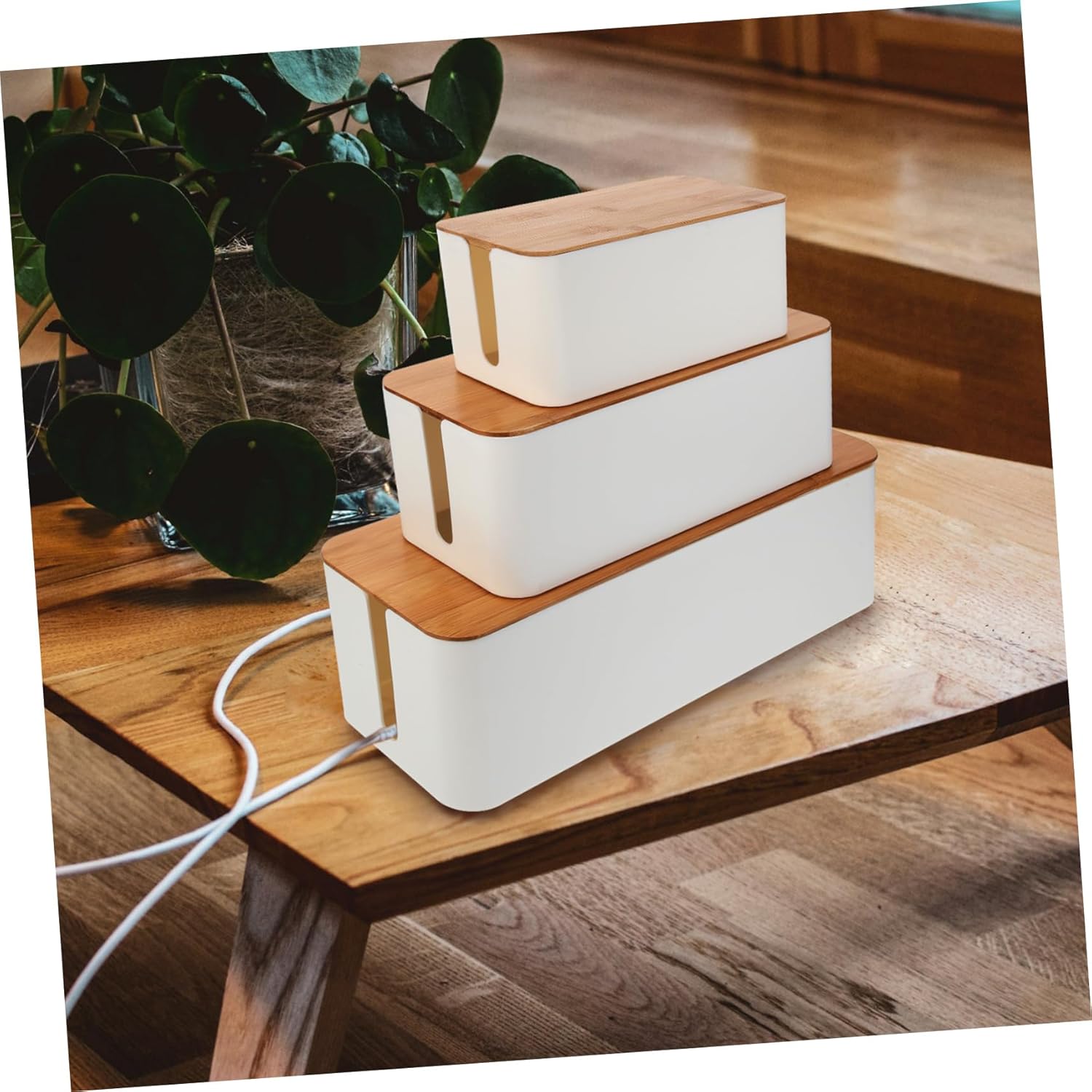 DOITOOL Wire Organizer Box 3pcs Cable Management Boxes Bamboo Lids Easy Cable Organization