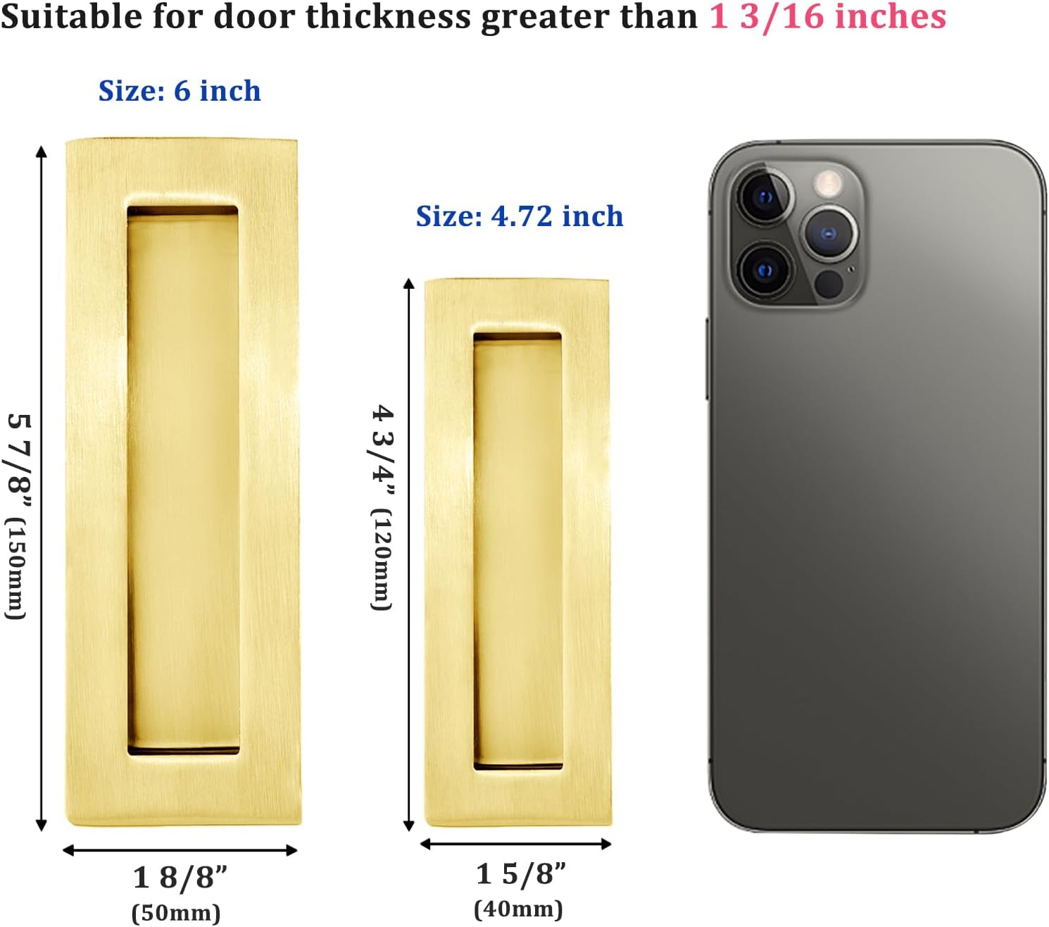 Dontay Sliding Pocket Door Handles, 304 Stainless Steel Non Locking Pocket Door Hardware, Recessed Flush Finger Pulls, Heavy Duty Edge Pull (4 Set, Satin Brass, 6 Inch)