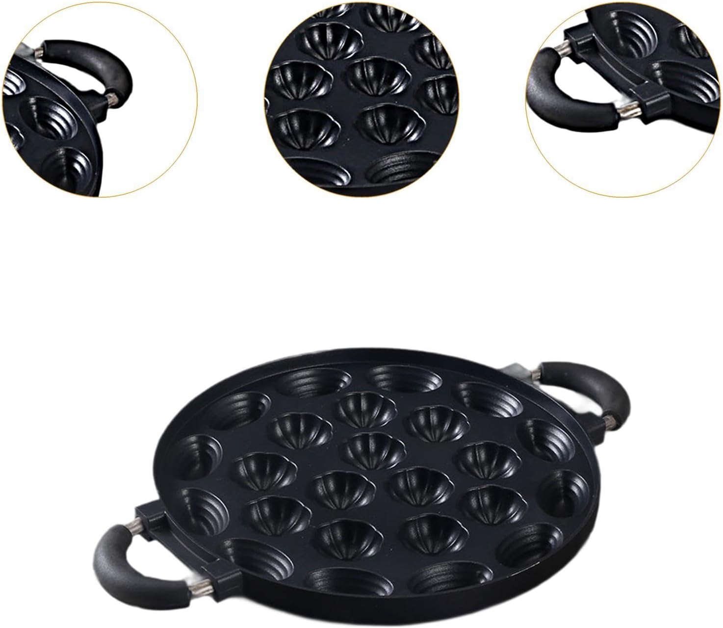 Description: - 【Premium Material】: This cake baking pan is made of solid aluminum alloy, which has high strength, good thermal conductivity and high cooking efficiency - 【Innovative Groove Design】: The unique groove design of the cake model pans is practical and convenient, suitable for making a variety of dishes - 【Even heating】: The specially designed base of the mini donuts maker pan ensures that the entire baking pan is heated evenly and can be used directly on the gas stoves - 【Multi Function】: This mini waffle maker is great for making takoyaki at home, and can also be used to make omelets, quail eggs or small pancakes, providing a variety of cooking possibilities - 【Cooking Experience】: This stylish and versatile doughnut maker pan is designed with your health in mind, providing an cooking experience, and comes with temperature control to customize your cooking creativitySpecification: - Material: Aluminum AlloySize Chart:Diameter: 27cm/10.63inch (Without Handle)Height: 3.3cm/1.30inchInner Diameter: 4.8cm/1.89inchPackage Includes:1 Donut Making Pan