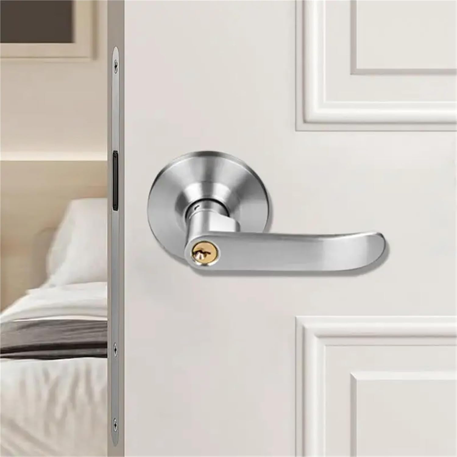 Gate HandlesSpecifications:Product name: Three-bar Handle LockWeight: 430gProduct size: about 17.5cm/6.89 inches long (see size diagram for details)Material: Aluminum alloy + copperSuitable door thickness: about 2.5-4.5cm/0.98-1.77 inchesProduct List:1 * Three-bar Handle Lock Set3 * Keys