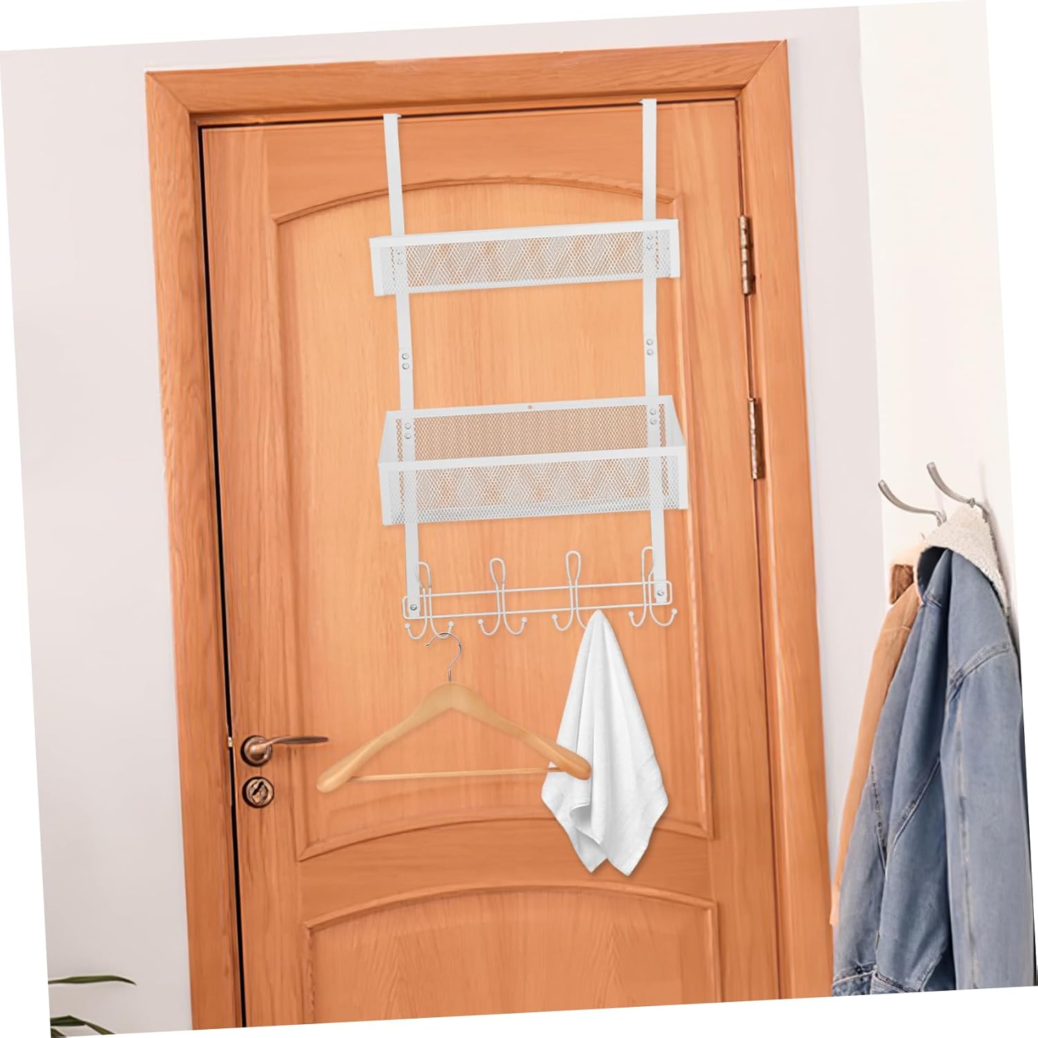 Package List 1 x behind door organizer basket with hooks Characteristics -Color:White over the door basket -Size:67.50X38.00X10.50cm/26.53X14.93X4.13in over the door storage shelf -Material:Iron behind door storage basket -Note: with 2 mesh , 8 hooks over the door organizer - Practical design, double-layer storage mesh are easy to store various items, large capacity, meet your demands behind door organizer shelf. - Made with metal material, sturdy and useful, behind door organizer shelf is excellent and safe behind door storage rack. - With hooks, back of door storage rack is suitable for storing and hanging clothes, towel, coat behind door organizer basket. - Useful and multipurpose, proper for bedroom, bathroom, living room, kitchen, home, office use back of door organizer rack. - Fine workmanship, simple design, reasonable structure, over door storage rack is useful, not taking up too much space over the door storage rack.Goods Informationover the door shelves Our over the door organizer basket with hooks made of metal material, sturdy and useful, safe and excellent, must meet your needs.over door shelves The professional and practical over the door organizer is suitable for bathroom, bedroom, kitchen, suitable for storing different items.door hanger Simple to install, easy to use, practical and convenient