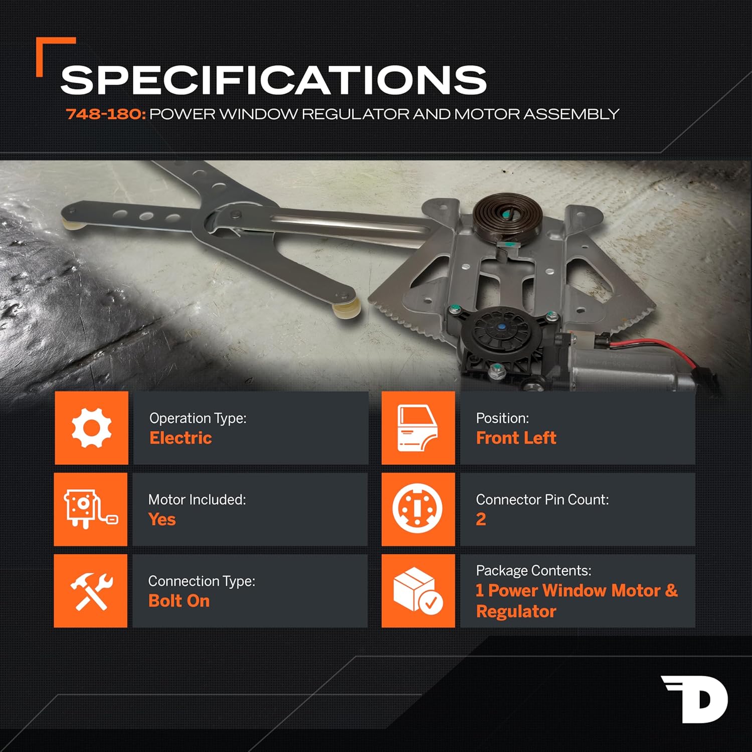 This replacement power window motor and regulator assembly is precision-engineered and extensively tested to match the exact fit, function and performance of the stock window regulator on specific vehicle years, makes and models.