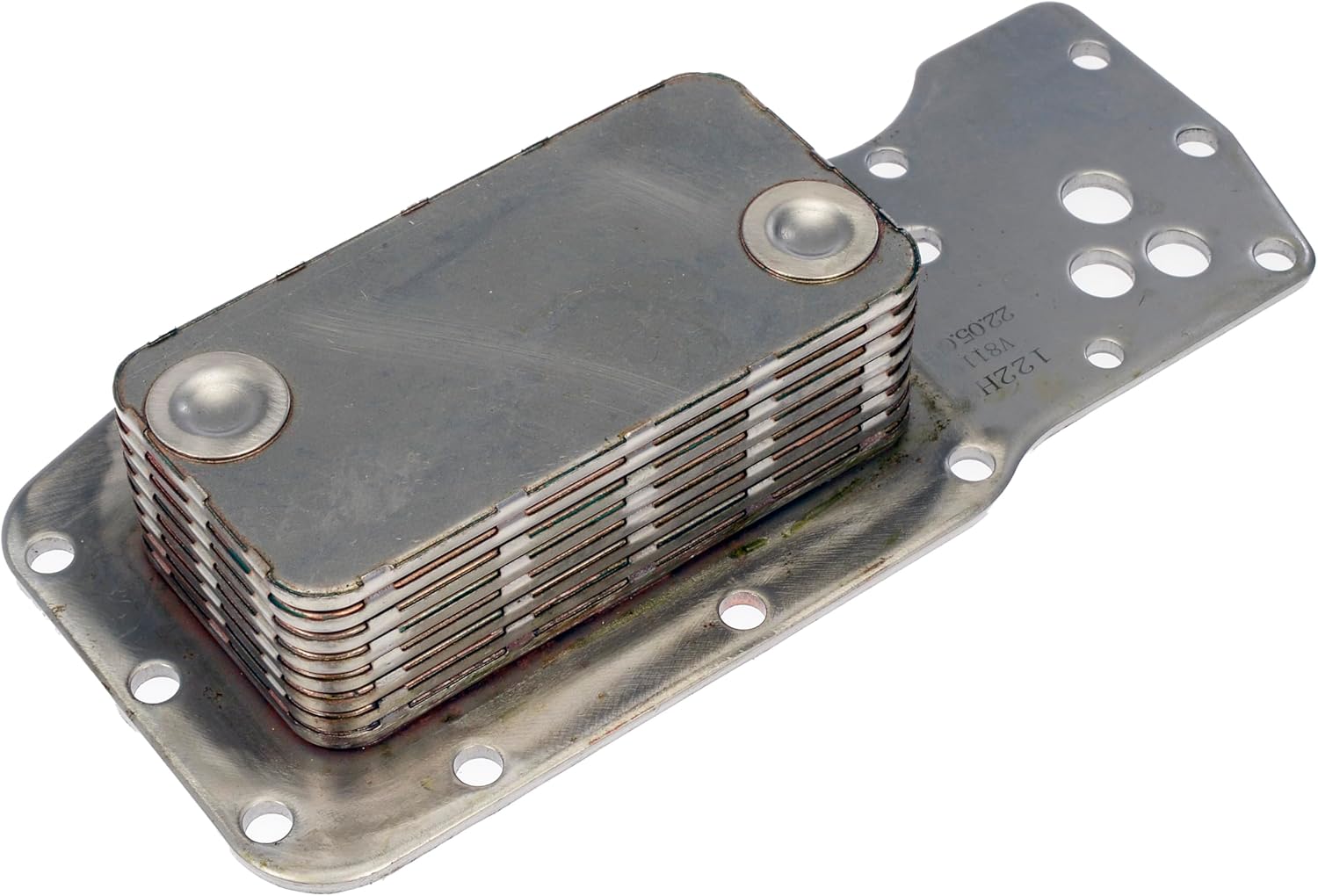 This engine oil cooler is designed to match the fit and function of an original equipment cooler on specified vehicles. It is engineered to help maintain proper engine oil temperature when an original cooler has failed from heat, corrosion or damage.