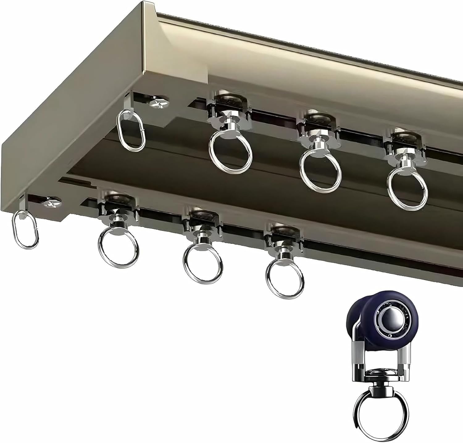 Double - Track curtain rail is a perfect blend of functionality and style. It features built - in nano - silent strips for ultra - quiet sliding. The heavy - duty, smooth - rolling wheels ensure durability. With anti - oxidation surface and elegant alloy end caps, it also has smooth - gliding nano pulleys for easy operationProduct NameName: Curtain double track Material: aluminum alloyType: Heavy duty double trackPulley: Nano pulleyInstallation: top mountingProduct Size:1.0m-6.0mOur curtain track system can be easily installed in any space, the sliding curtain track kit is perfect for living room, shower room, bedroom, ceiling, bay window, RV, privacy, hotel, hospital, classroom, cubicle hanging or anywhere you like!Caution.Due to shipping restrictions, the curtain track will be sent in sections, use connectors to connect, simple and convenient!