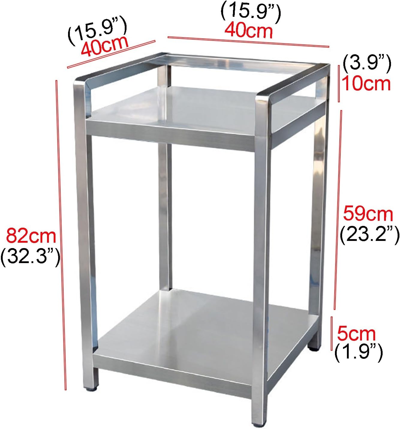 Product Name: Double-Layer Workbench with GuardrailsMaterial: Stainless SteelDimensions: 40x40x82cm, 50x50x82cmProduct Contents: Workbench x 1Important Notes:Minor welding marks may appear on stainless steel products due to manufacturing processes.Slight countertop scratches may be present on stainless steel surfaces.All dimensions are manually measured and may vary slightly.Images may show slight color differences due to shooting angles, and resolution variations.
