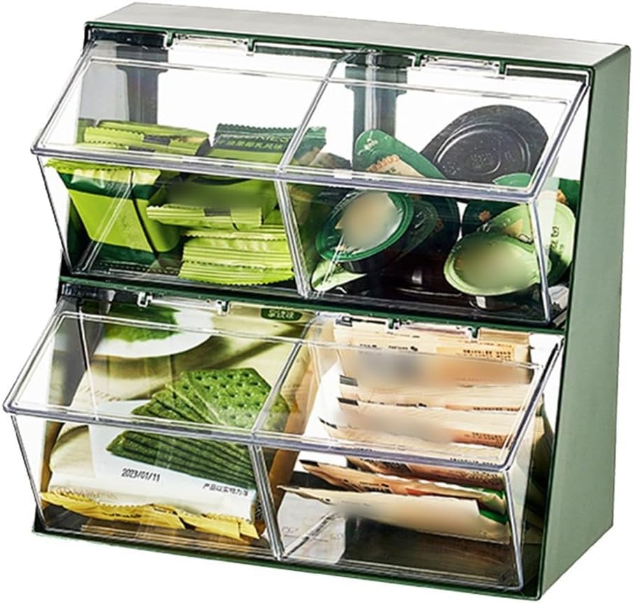 Features:*Practical Storage Solution: This double-layer tea bag storage box provides an efficient way to organize your tea bags and coffee capsules, keeping your favorite beverages neatly arranged and easily accessible on your desktop or coffee table.*Space-Saving Design: With its compact structure, this storage rack maximizes your available space while maintaining a stylish appearance, making for both small and large areas in your tea room or kitchen.*Versatile Use: Designed to accommodate various types of tea bags and coffee capsules, this storage rack is perfect for tea enthusiasts and coffee lovers alike, allowing you to showcase and store a wide variety of flavors.*Good Construction: Crafted from sturdy materials, this storage box is built to last, making that your tea bags and coffee capsules remain protected from moisture and damage over time.*Elegant Aesthetic: The sleek and simple design of this storage rack adds a touch of elegance to your decor, blending seamlessly with any interior style while providing a functional solution for your beverage storage needs.Specifications:Product Name:Double-layer tea bag storage boxMaterial:PlasticSize:14*13*14cm/27*18*25cmColor:Green/WhiteFitment:Suitable for tea roomNumber of Pieces:1Package Content:1*tea box