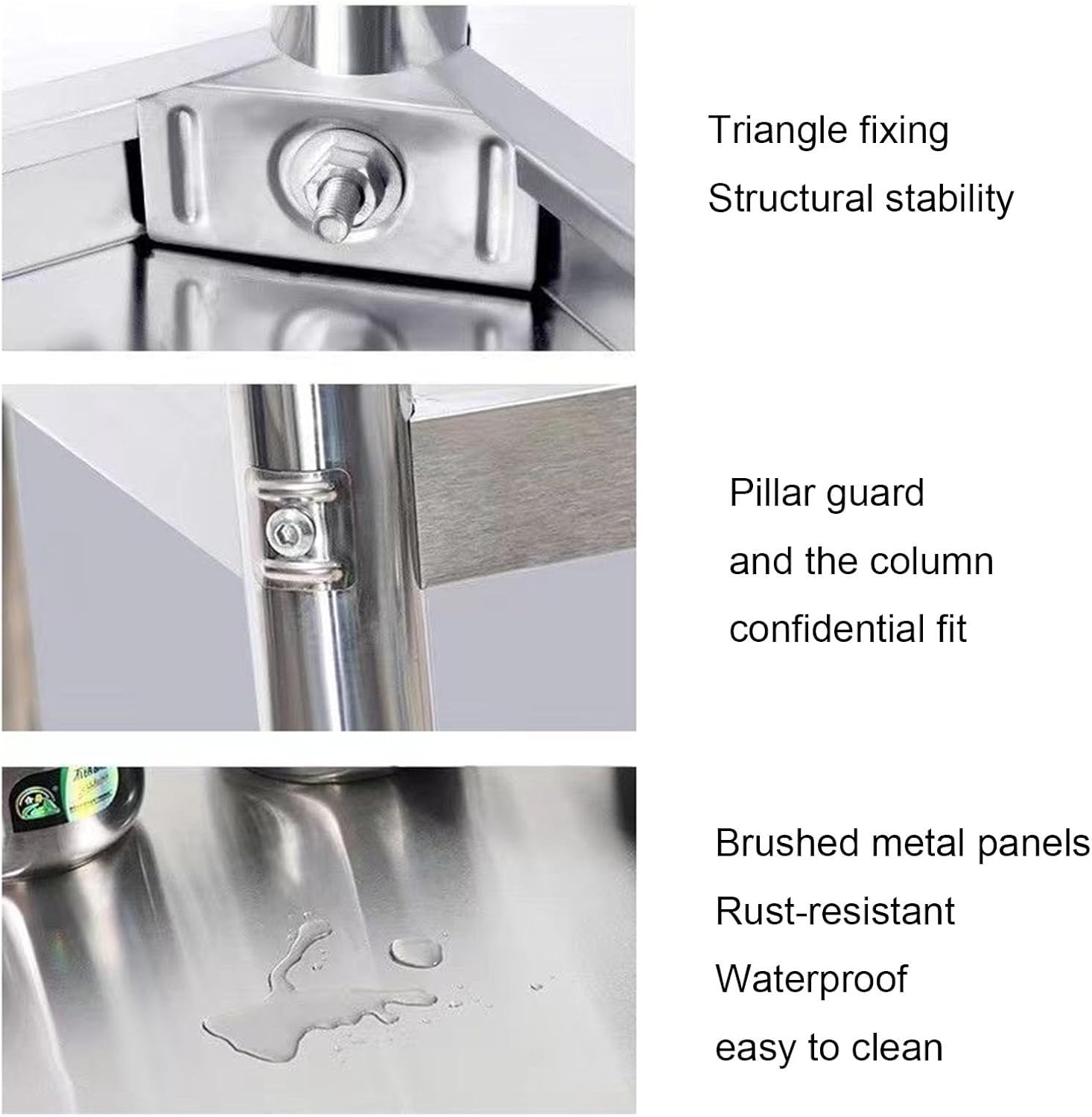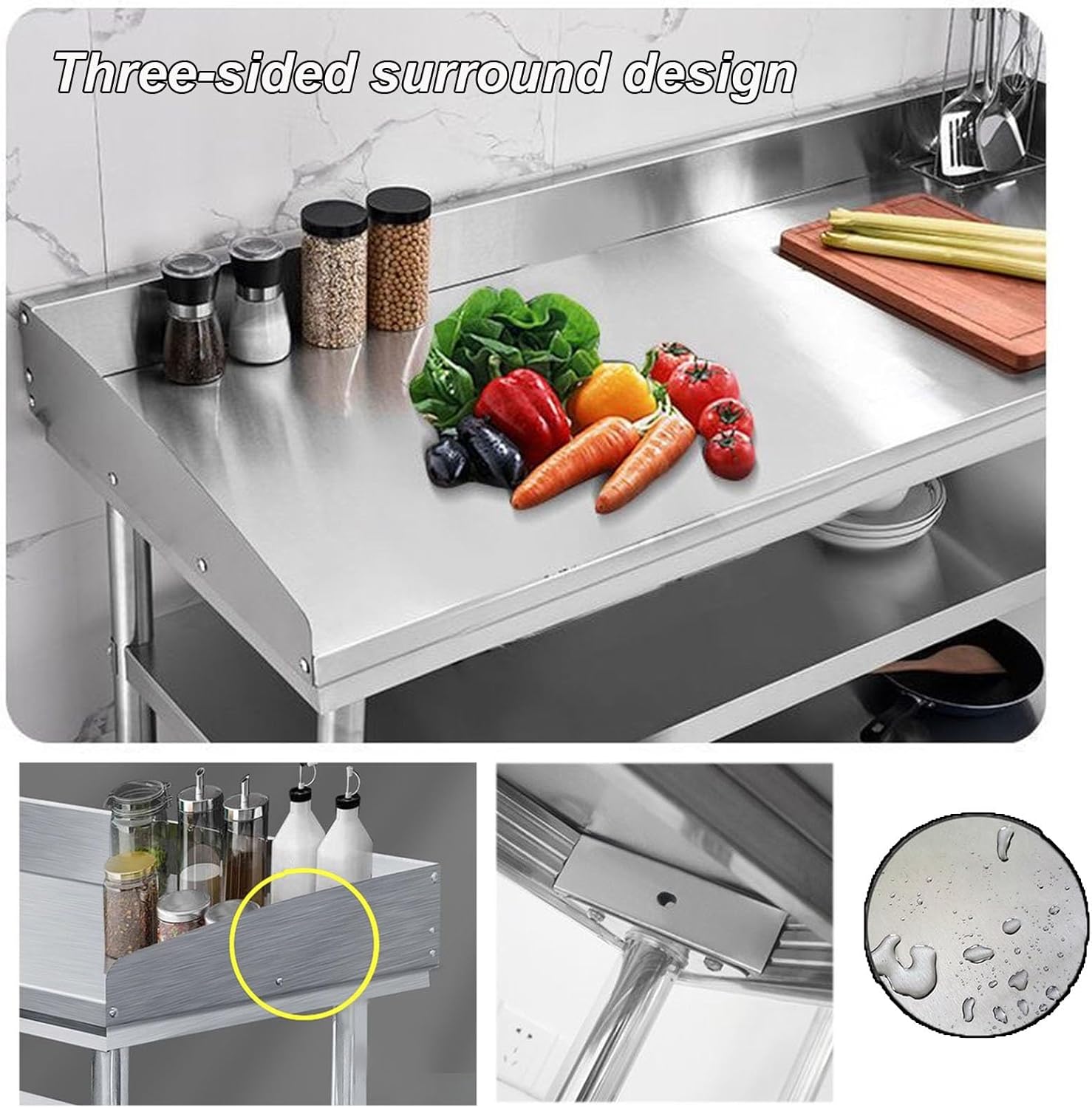 Product name: three-rimmed stainless steel worktable Product material: stainless steel Product size: 80x50x80cm/31.5x19.7x31.5“ , 90x50x80cm/35.4x19.7x31.5” , 100x50x80cm/39.4x19.7 x31.5“ , 120x50x80cm/47.2x19.7x31.5” , 80x60x80cm/31.5x23.6x31.5" , 90x60x80cm/35.4x23.6x31.5 “ , 100x60x80cm/39.4x23.6x31.5” , 120x60x80cm/47.2x23.6x31.5" , 80x70x80cm/31.5x27.6x31.5 “ , 120x70x80cm/47.2x27.6x31.5” , 80x80x80cm/31.5x31.5x31.5" , 100x80x80cm/39.4x31.5x31.5 “ , 120x80x80cm/47.2x31.5x31.5” Product Process: Polished Product Scope of Application: suitable for kitchens, online stores packing, canteens, commercial kitchens hotelTriangle structure and stable design Increase the support rib at the bottom to enhance the load-bearing , sturdy Triangle fixed legs, chopping bones are not afraid ofProduct list: workbench x1 (excluding other items)Attention: The product is made of stainless steel, there may be slight scratches Dimensions are hand-measured and may vary slightly Due to the shooting angle, monitor and resolution, the image may have a slight color difference