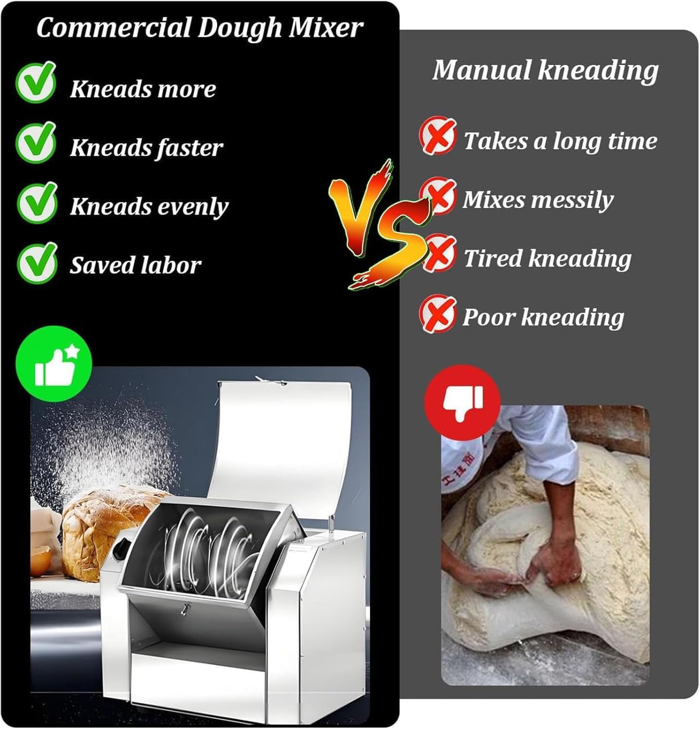★Commercial Kneading Machine,Commercial Dough Mixer,Stainless Steel Mixer,Dough Mixing Machine For Pasta Noodle Pizza Making★Specifications:Product Name: Commercial Dough MixerMaterial: Food Grade Stainless SteelVoltage: 110/220vCapacity: 3kg/5kg/8kg/10kg●3kg Model (With Timing Function)Power: 1.1kwNoodle Volume: 1~3kgWeight: 18kgBody Size: 41*24*34.5cm/16.1*9.4*13.6inNoodle Bucket Size: 26*20*21cm/10.2*7.8*8.2inPackaging Size: 43*25.5*37.5cm/16.9*10*14.7in●5kg Model (With Timing Function)Power: 1.5k WNoodle Volume: 3~5kgWeight: 25kgBody Size: 47*30*41cm/18.5*11.8*16.1inNoodle Bucket Size: 30*23*27cm/11.8*9*10.6inPackaging Size: 48.5*30.5*42cm/19*12*16.5in●8kg Model (With Timing Function)Power: 1.5kwNoodle Volume: 5~8kgWeight: 25kgBody Size: 48*32*45cm/18.8*12.5*17.7inNoodle Bucket Size: 30*25.5*32cm/11.8*9.8*12.6inPackaging Size:49*33*47cm/19.3*13*18.5in●10kg Model (With Timing Function)Power: 1.5kwNoodle Volume: 5~10kgProduction Efficiency: 70kg/HWeight: 30kgBody Size: 51*32*49cm/20*12.5*19.2inNoodle Bucket Size: 34*25.5*32cm/13.3*9.8*12.6inPackaging Size: 53*33*51cm/20.8*13*20in★Packing ListElectric Dough Kneading Mixer Machine*1★Optimal Service: If you have any questions , we will give you a satisfactory answer within 12 hours. We attach the utmost importance to the customer's shopping experience and product quality, so that you can shop without worry.
