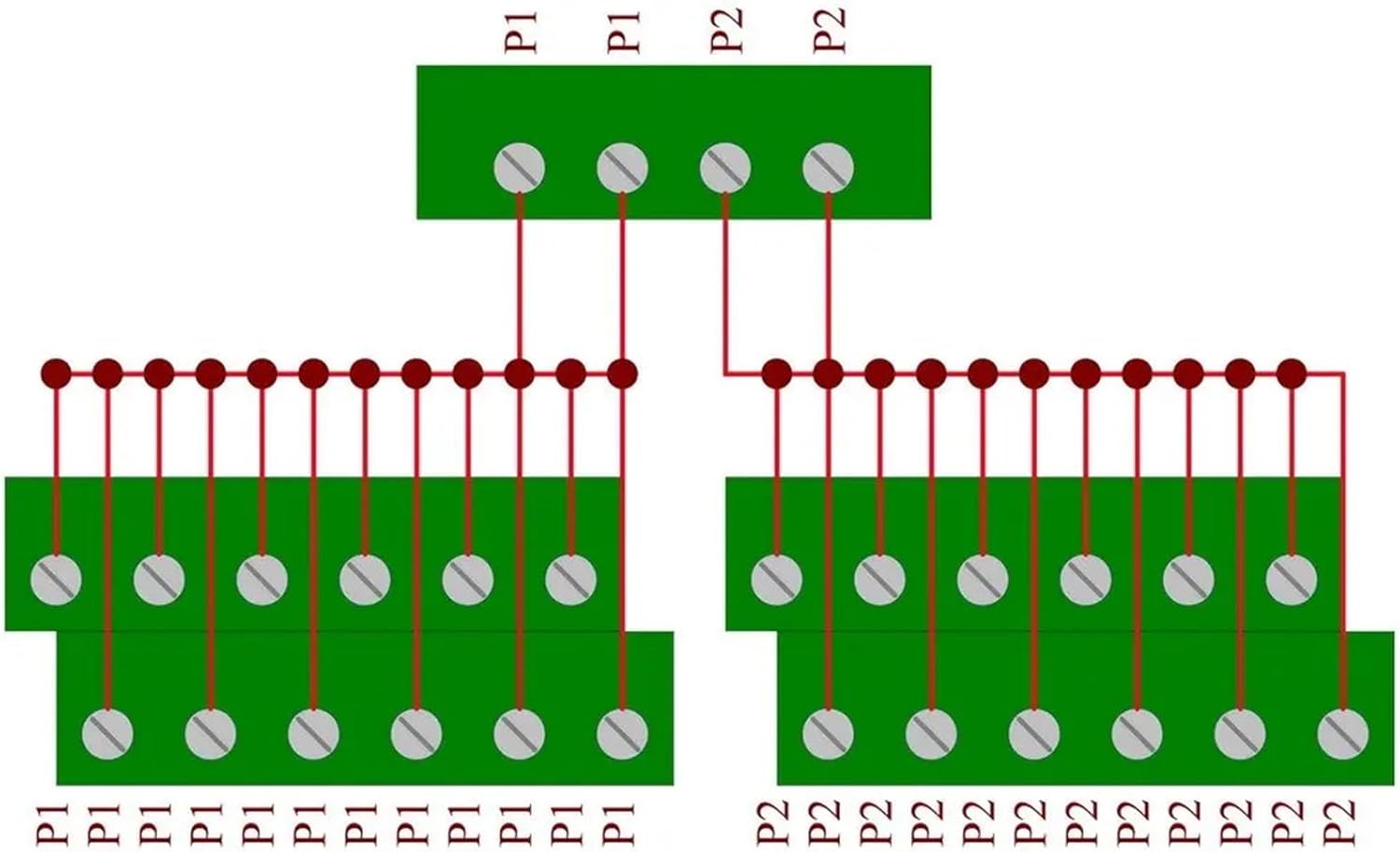 Wire TerminalsDIN Rail Mount Power Distribution Module Board.Specification:Voltage - 250Vac/dc, Current Rating - 40A.PCB Dimensions - 80mm x 72.5mm x 34mm (W x L x H).Module Dimensions - 83mm x 87mm x 58mm (W x L x H).Input terminals: pitch - 7.62mm/0.3", current 30A for per position, wire size 26~10 AWG, stripping length 8mm, Metric M3 slotted screw.Output terminals: pitch - 5.08mm/0.2", current 20A for per position, wire size 26~12 AWG, stripping length 7mm, Metric M2.5 slotted screw.FR-4 fiber glass PCB, dual copper layers. fireproof nylon material DIN rail mount carrier (not low quality carrier), can support width 35mm / 32mm / 15mm rail, and the carrier can be taken apart for panel mount use.