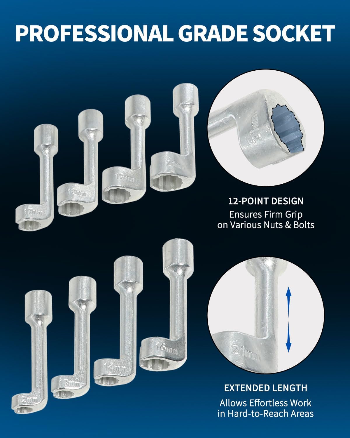 | Included Components | 12mm 13mm 14mm 16mm 17mm 18mm 19mm 21mm Diesel Injector Line Socket Wrench, A Portable Case and Instruction Manual |