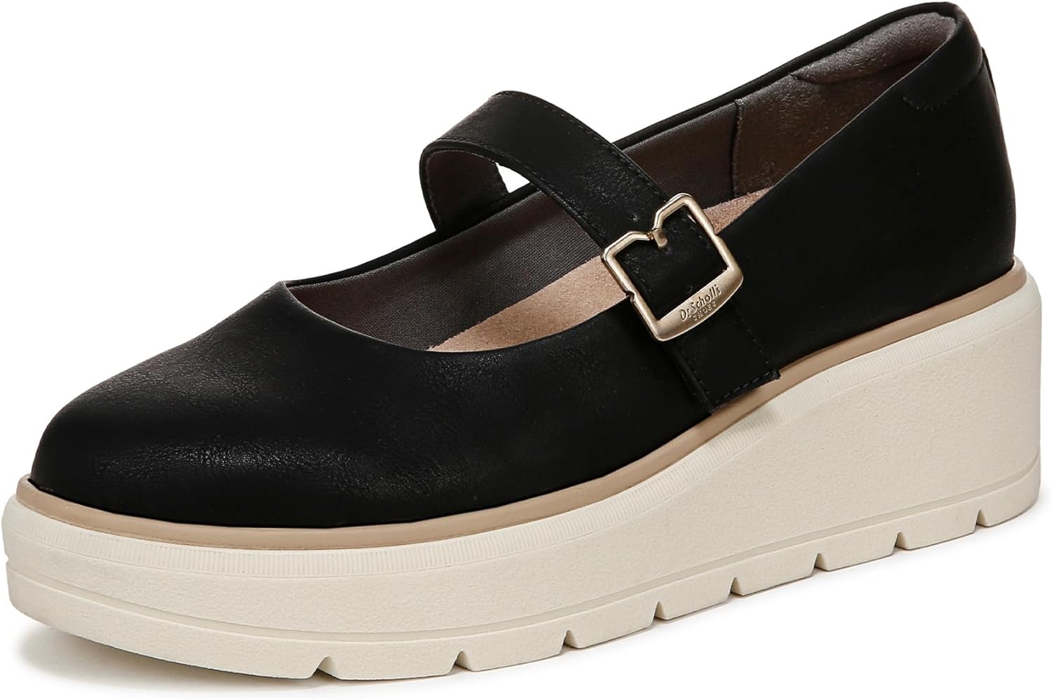 Platform wedge Mary Janes for women built with our innovative sport technology. ENVIRONMENTALLY PREFERRED CRAFTING: Fabric linings and topcloth partially made from recycled plastic bottles; partially recycled toe box and heel counter. MATERIALS: Low-chemical faux leather upper. FIT: Adjustable buckle closure for secure fit. COMFORT: Anti-odor Insole Technology with cushioning, comfort, & arch support that uses 15% cushy plant-based BLOOM® foam insole. MOVEMENT: Lightweight, flexible construction moves with you. FEEL GOOD FLEX: Soft, lightweight outsole with built in flex grooves. STYLE: Womens Mary Jane loafers with iconic buckle detail, 1 3/4 inch wedge heel and 1 1/4 platform lug outsole. CONSCIOUSLY PACKAGED: This style is shipped in an environmentally preferred 1-piece box made with primarily recycled materials that can be recycled & soy-based inks. Enjoy maximum comfort in these chic Mary Janes with edgy style and on-trend design.