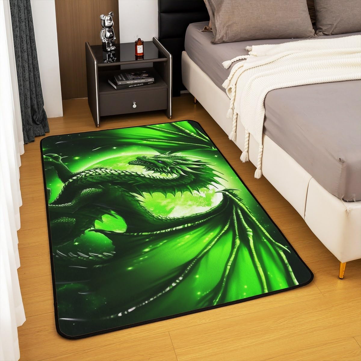 Tips: The carpet will arrive with temporary creases, you can repeat the process several times by rolling the carpet in the opposite direction of the creases and then spreading the carpet flat and pressing the edges of the roll with a heavy object to restore the carpet to its original state. We recommend using an iron to iron carpets at low temperatures more quickly Size: 2 sizes can be chosen of our rugs dimension: 3' x 5' x 0.39'' 100cm x 150cm x 1cm. 5' x 6'6'' x 0.39'' 150cm x 200cm x 1cm. Material: Made with 100% polypropylene. No chemicals used, No dye substance harming the health of you or your family. The rubber non slip design on the bottom of the area rug for bedroom is the safest protection. One piece is enough,you don't need to buy additional non slip carpet pads Machine washable: Soak in cold water for 10 minutes,then folded twice and put into the washing machine on gentle cycle, and then dry in the air.Do not use chlorine or bleach Features: With many different patterns to choose from, you will easily find rugs to coordinate with your decor. Our rug is widely used as the floor rug as well as a play mat, kitchen rug, bedroom rug, laundry mat, living room mat, office rug etc. Notes: Due to the light and screen setting difference, the item's color may be slightly different from the pictures Please allow slight dimension difference due to different manual measurement