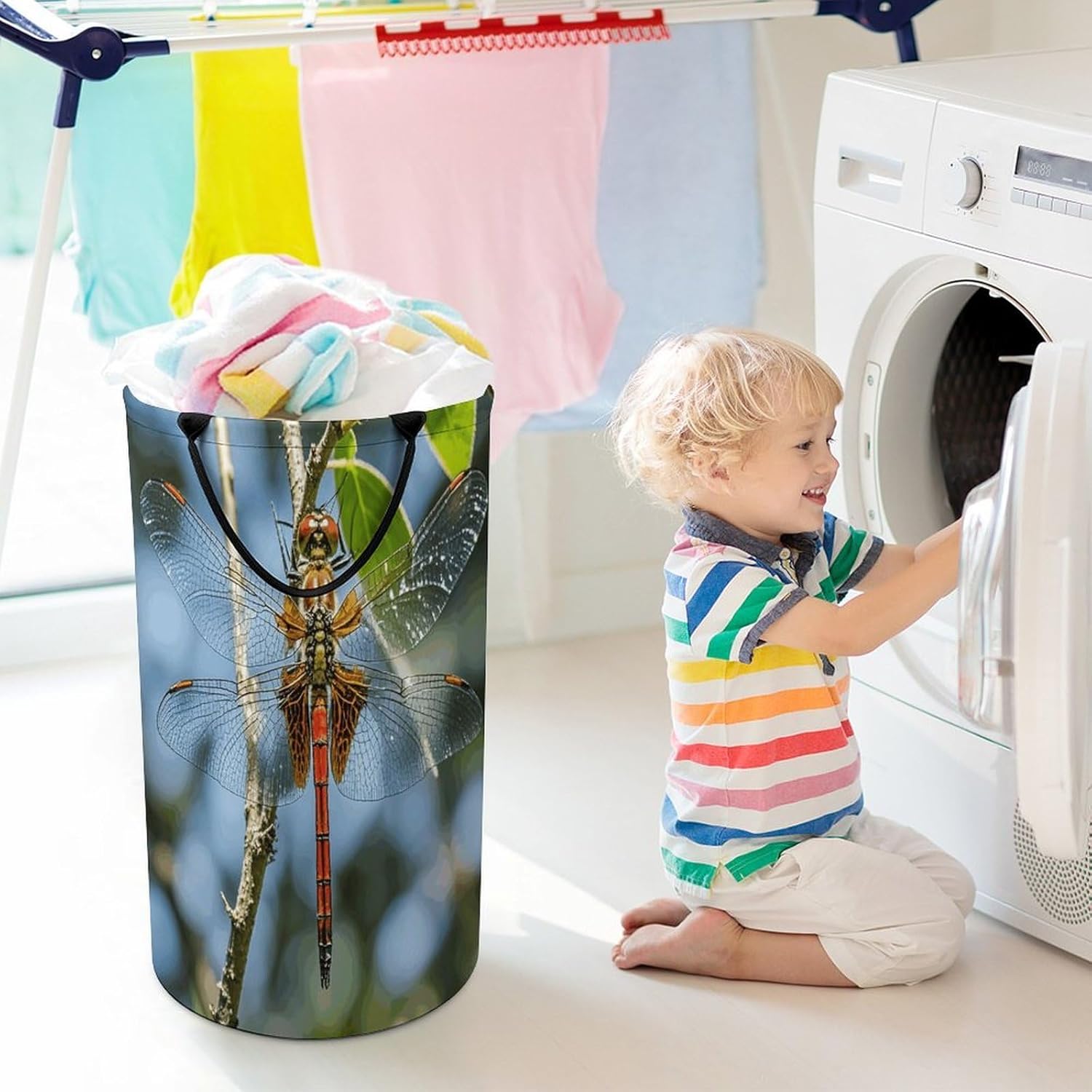 Tired of messy piles of dirty clothes cluttering your bedroom, bathroom, or laundry room? Meet your new organizational essential: the Large Collapsible Laundry Hamper, designed to blend functionality, and style seamlessly into your daily life. Whether you're a busy parent, or a frequent traveler, this versatile hamper Dirty clothes hamper clothes hampers for laundry Large Tall Clothes Basket Bin Decor Storage of Dirty Clothes is crafted to simplify your routine and elevate your space.With its generous size, this hamper easily handles a week's worth of laundry for individuals or small families, eliminating the hassle of multiple trips to the washing machine. From bulky sweaters and bed linens to towels and clothes, Removable Laundry Bags Laundry Hamper Bag Large Laundry Basket effortlessly accommodates all types of fabrics. Say goodbye to overflowing baskets and hello to a tidier, more organized home.More than just a Foldable Washing Bin Collapsible Laundry Bag Dragonfly Is Red laundry basket, this hamper adds a touch of modern elegance to any room. Its neutral, minimalist design complements bedrooms, bathrooms, closets, RVs, campers dorms. Use Waterproof Washing Bin Decorative Tall Hamper Large Storage Basket to store blankets, or seasonal items, its versatility knows no bounds.