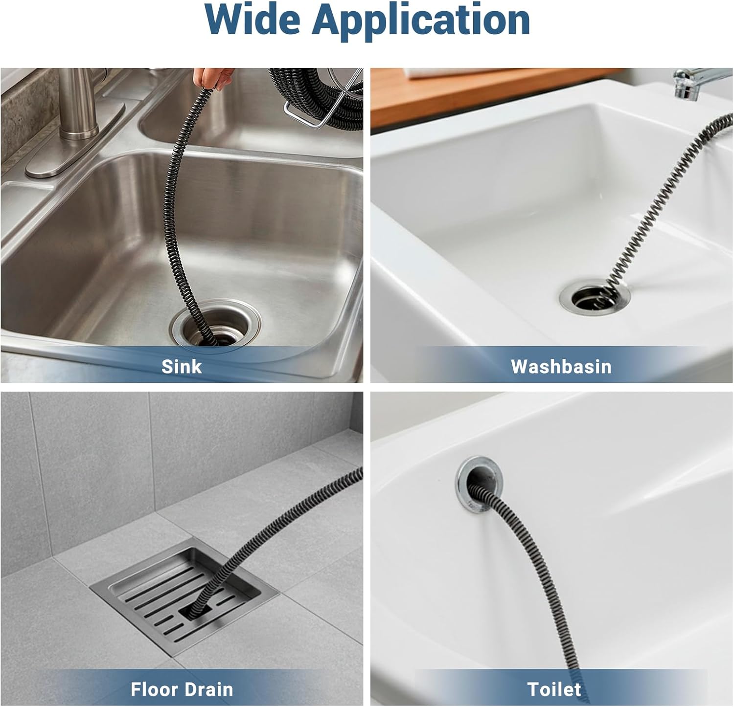 Product Name: Drain Cleaning Cable - 50 Feet x 5/8" DiameterApplication: This hollow-core cable is compatible with any sectional drain cleaner that uses manual feed and can be applied to unclog toilets, sinks, and floor drains in homes, offices, and public places.Dimensions of this Drain Cleaning CableCable Length: 50 FeetCable Diameter: 5/8"Applicable Pipe Size: 0.8"-3.9"/20-100mmVersatile UseThis drain cleaner cable is up to the task, whether it's residential pipes or public drainage systems. It effortlessly handles various types of blockages in household drains, toilets, gardens, and floor drains, delivering a smooth draining experience.How to Use?Prepare the Auger Tool: First, attach this cable to a drain auger. The metal end with the hole connects to the tool's chuck or clamp.Insert into the Pipe: Insert the flexible cable end into the clogged drain or pipe.Advance the Cable: Turn the auger tool's crank or run the drill slowly to push the cable deeper into the pipe. This allows the coiled cable to navigate the pipe's bends.Break Up the Clog: If you feel tension when the cable hits the blockage, rotate the cable back and forth or continue cranking to dislodge it.Retrieve the Cable: Pull the cable back out of the pipe by changing the direction of the tool.