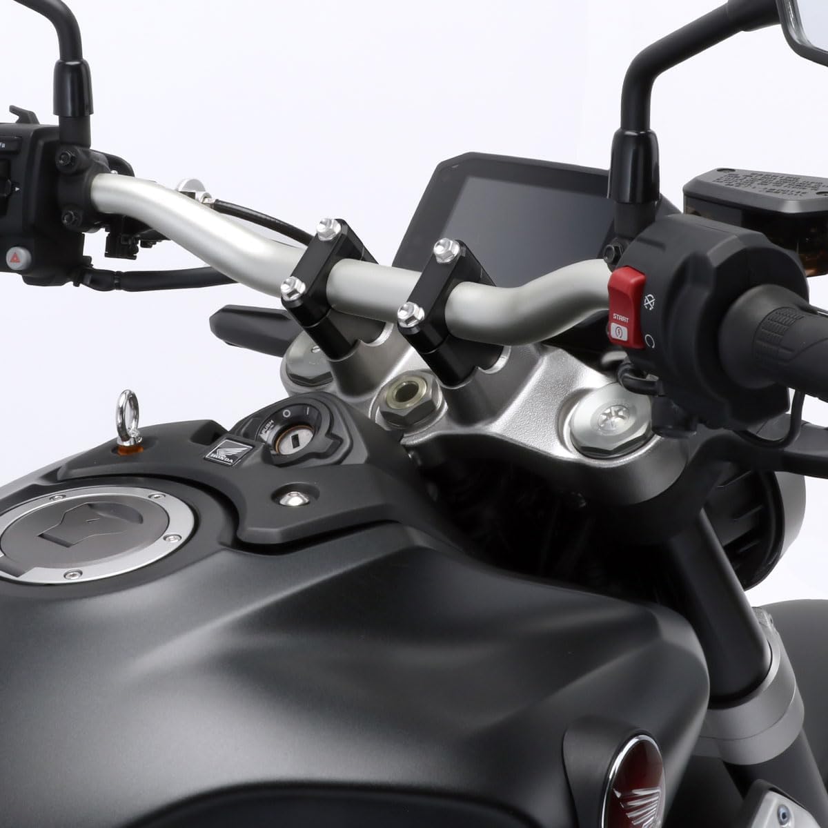 Universal bar riser kit 7/8in. and 1 1/8in. bar mounts. Provides 19mm and 30mm higher bar position than stock bar position. Comes with bar clamp bolts. Made of A7009-T6 aluminum.