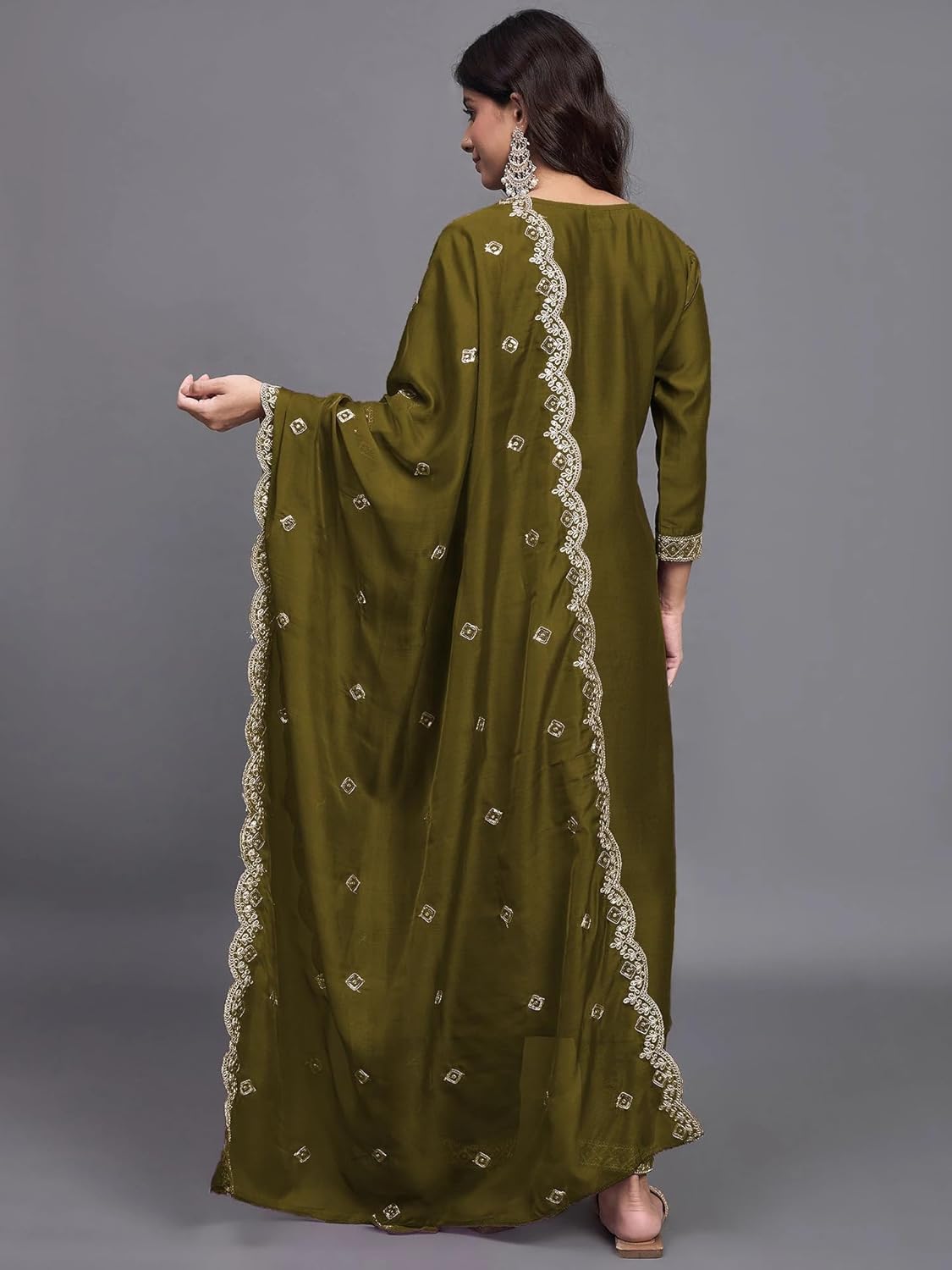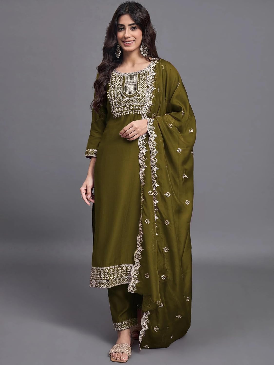 "Please Double check before placing order", The model, 5'8", is wearing a size Small. Garment sizes in inches: Small 36", Medium 38", Large 40", X-Large 42", and XX-Large 44". For a perfect fit, measure a well-fitted kurta from armhole to armhole in inches and select the appropriate size. Soft & Breathable Rayon Fabric: Made from high-quality rayon that feels lightweight and comfortable, perfect for all-day wear in any season. Elegant Embroidered Design: Features beautiful embroidery work on a classic straight kurta, adding a refined and graceful ethnic touch. Straight Kurta with Matching Pants: Designed in a flattering straight silhouette paired with comfortable pants for a smart and stylish look. Complete Set with Dupatta: Comes with a coordinated dupatta to complete the ensemble, making it ideal for festive occasions, office wear, and family gatherings. womens salwar suit rayon, rayon embroidered kurta set for women, straight kurta pant dupatta set, rayon ethnic wear for women, designer salwar kameez suit, festive wear rayon suit set, party wear embroidered kurta, traditional rayon salwar suit, elegant womens ethnic outfit, daily wear kurta pant set, Indian ethnic rayon dress, stylish straight kurta set, formal wear salwar suit, lightweight rayon kurta set, trendy womens ethnic set, office wear embroidered kurti pant dupatta