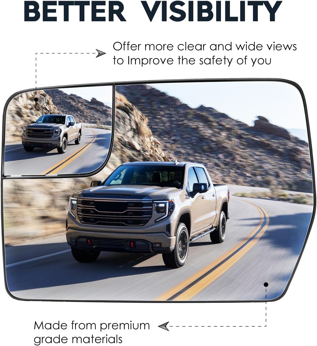 Specification: Material: ABS & Glass L*W*Diagonal Size: 9.56 x 6.77 x 10.8 inches Replace Part Number for: Left -- BL3Z-17K707-E Right -- 4L3Z-17K707-DA Package Includes: A Pair of Side Power Heated Mirror Glass; 4 BucklesFit for: For 2011 Ford F150 For 2012 Ford F150 For 2013 Ford F150 For 2014 Ford F150 Use a crowbar to pry the old glass together with the plate; Unplug the pins which connect the old glass; Put the pins into the new glass; Put the plate align with the steering gear, and press it on the center.