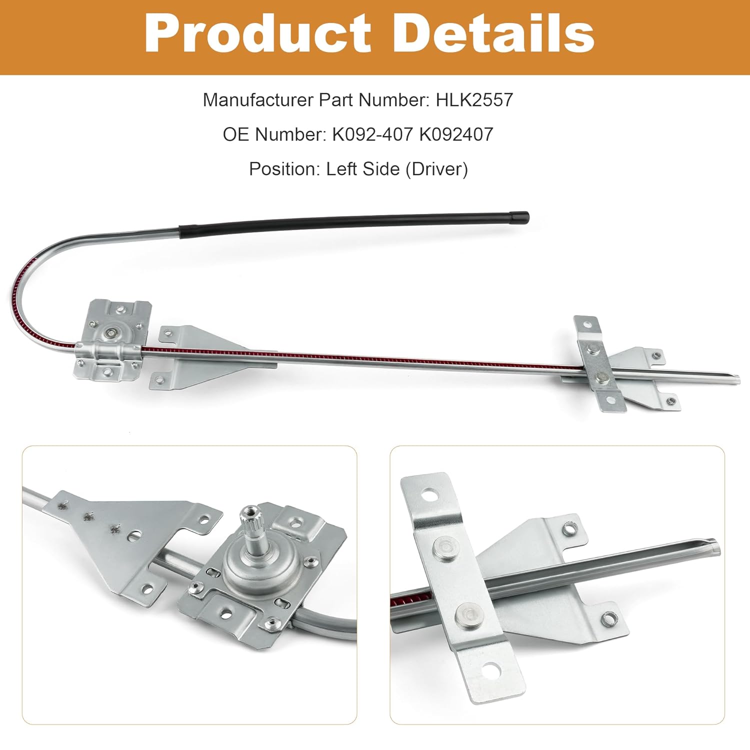 Condition: New Brand: Jetuplusllc Part Type: Window Regulator Manufacturer Part Number: HLK2557 OE Number: K092-407 K092407 Position: Left Side (Driver) LH(Driver Side) Manual Window Regulator, Replaces OE Number K092-407 K092407 Fits for Kenworth C500, T300, T800, W900B, W900L 1997-2009, Kenworth T600B 1997-2003 Made From High-Strength Materials With Precise Engineering, Providing Reliable Performance and Long-Lasting Service Life Under Heavy-Duty Use Fitment Fits for Kenworth C500 1997 thru 2009 Fits for Kenworth T300 1997 thru 2009 Fits for Kenworth T600B 1997 thru 2003 Fits for Kenworth T800 1997 thru 2009 Fits for Kenworth W900B 1997 thru 2009 Fits for Kenworth W900L 1997 thru 2009