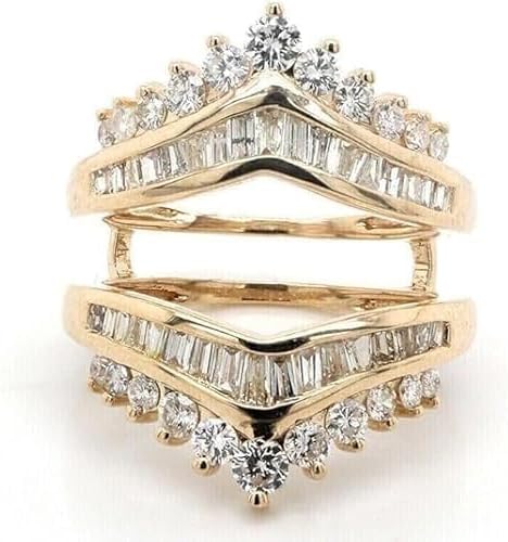 Elevate your wedding ring with this stunning 3-carat round lab created diamond enhancer wrap guard ring from Drizzle Jewels. Crafted in sterling silver with a luxurious 14k yellow gold finish, this ring enhancer adds brilliance and sophistication to your existing wedding set. The wrap guard design gracefully embraces your center ring while the lab created diamonds provide remarkable sparkle at a fraction of the cost of natural stones. The premium 925 sterling silver construction ensures durability while the yellow gold finish adds a touch of timeless elegance. Perfect for special occasions or everyday wear, this enhancer transforms your wedding ring into a more dramatic and eye-catching piece. The versatile design complements various ring styles and stone shapes, making it an excellent choice for upgrading your bridal jewelry collection.