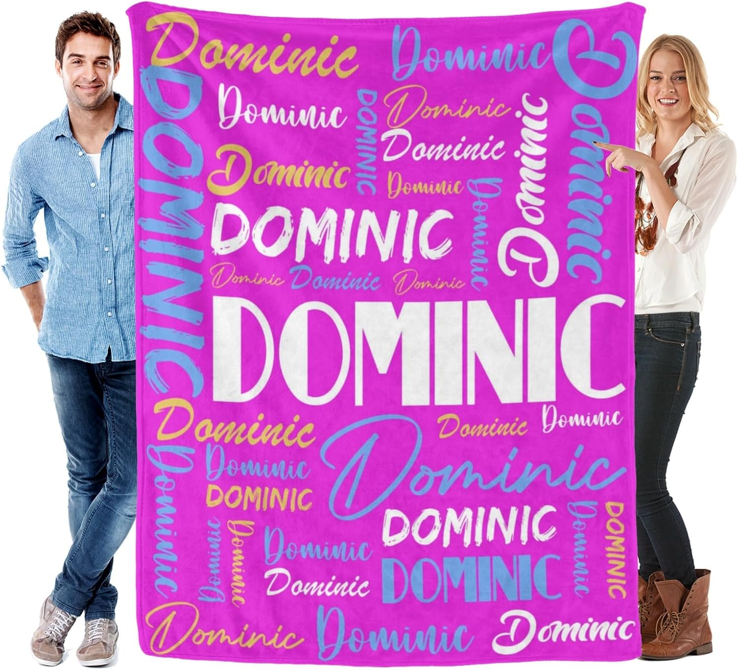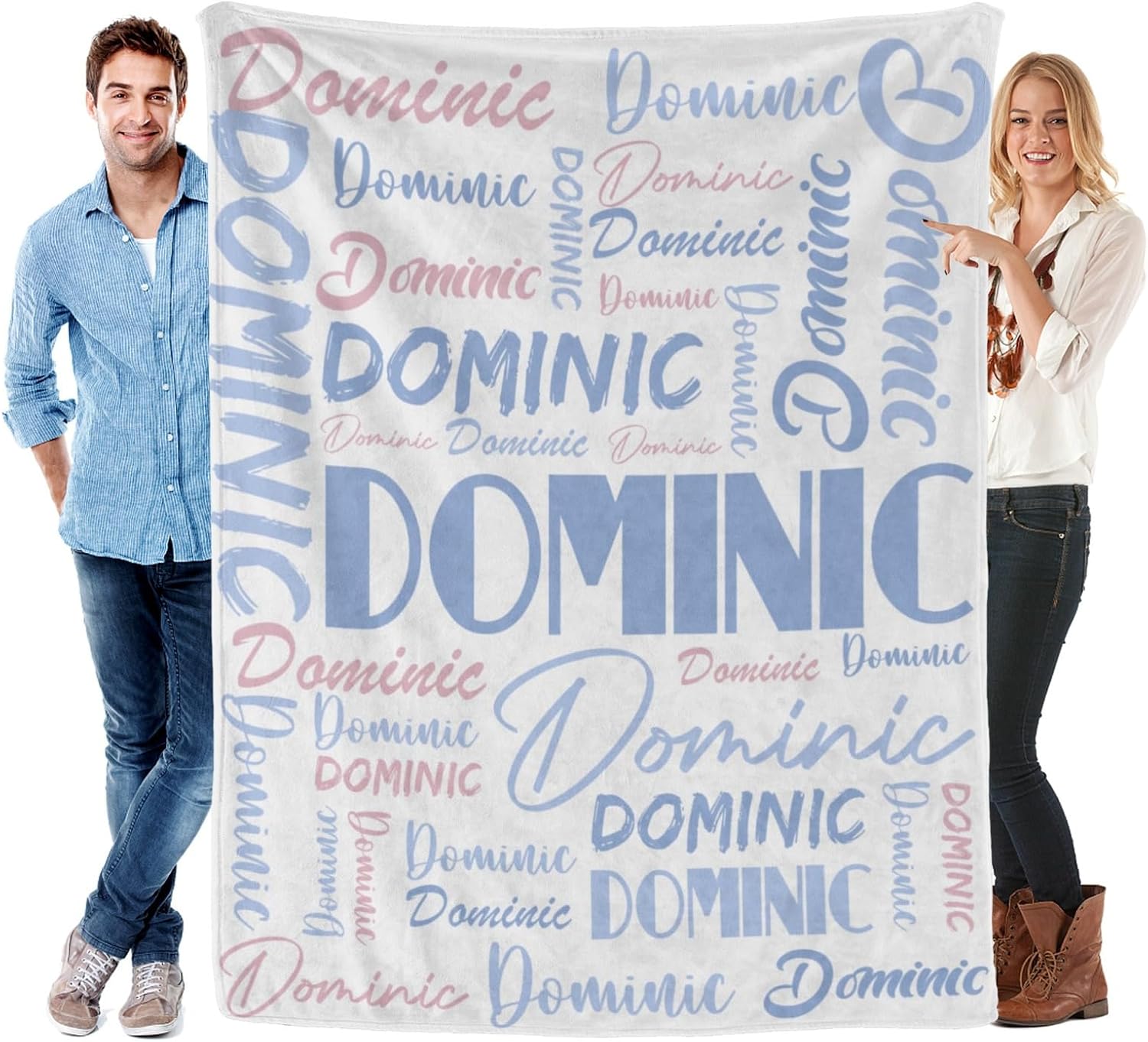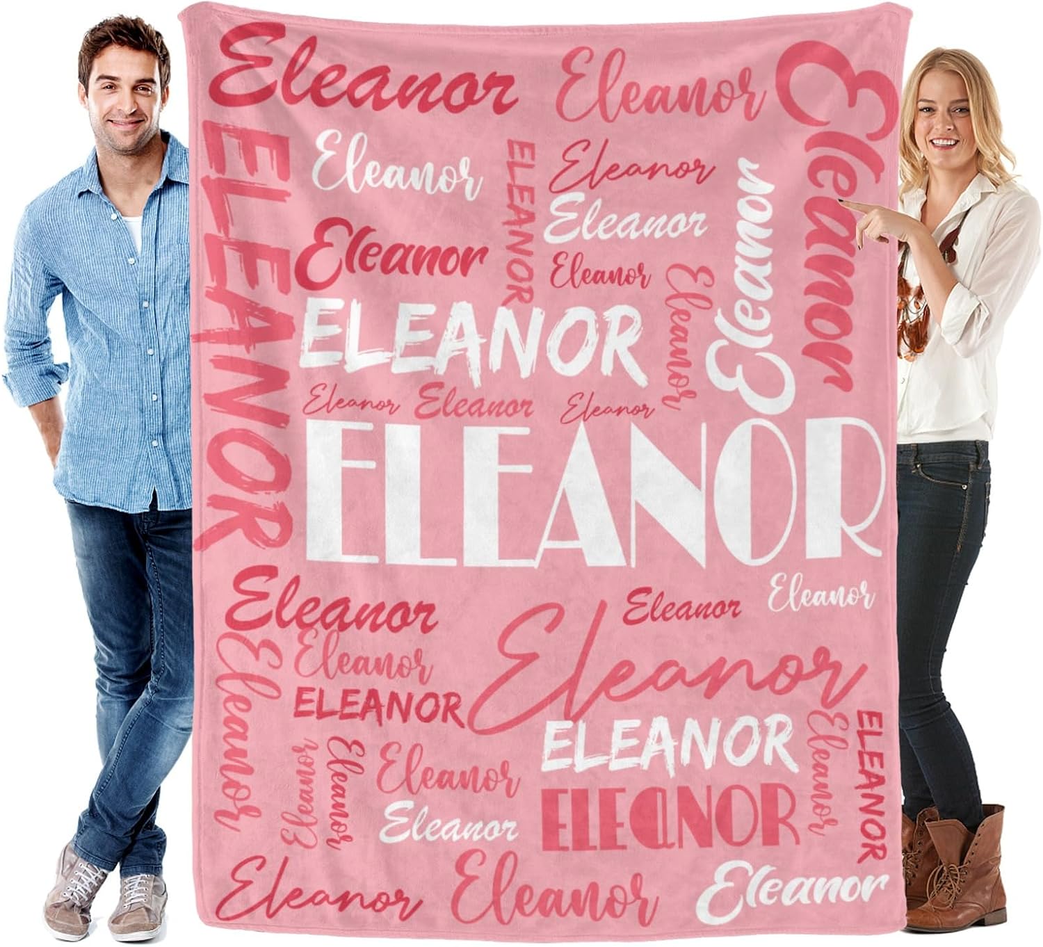 Features: 1.Design your own special fluffy plush ultra-soft micro flannel throw blankets with name or text you want. 2. Made of high quality anti-pilling flannel, which is soft touch, pilling resistance, wrinkle resistance, durable and comfortable, have a good touch and friendly to your skin, your kids, your family. 3. Suitable for all seasons, perfect for bed, sofa, camping, cold movie theater or traveling. 4. Easy to Care: Machine washable or hand washable, tumble dry at low temperature, holds several machine wash and dry beautifully. 5. No matter what name you provide, we will print them well on your personalized blanket, which will be the most unique gifts or souvenirs on various holiday, anniversaries. 6.Perfect gifts for Birthday, Christmas, Wedding, Anniversary Valentine's Day. How to Customize: This product is designed with the tools that you can create a very exclusive gift. 1.Choose the size and color you want 2. Click "Customize Now" button 3.Provide your names or your text,we will achieve your expected effect as plan 4.Add to cart. Attention Please: 1. The name you provide should be UPPERCASE name, up to 12 characters, letters only. Name will be replicated multiple times and fonts as displayed. 2.The other side of the blanket is white color.