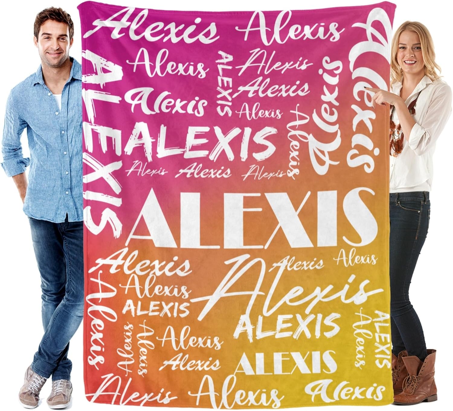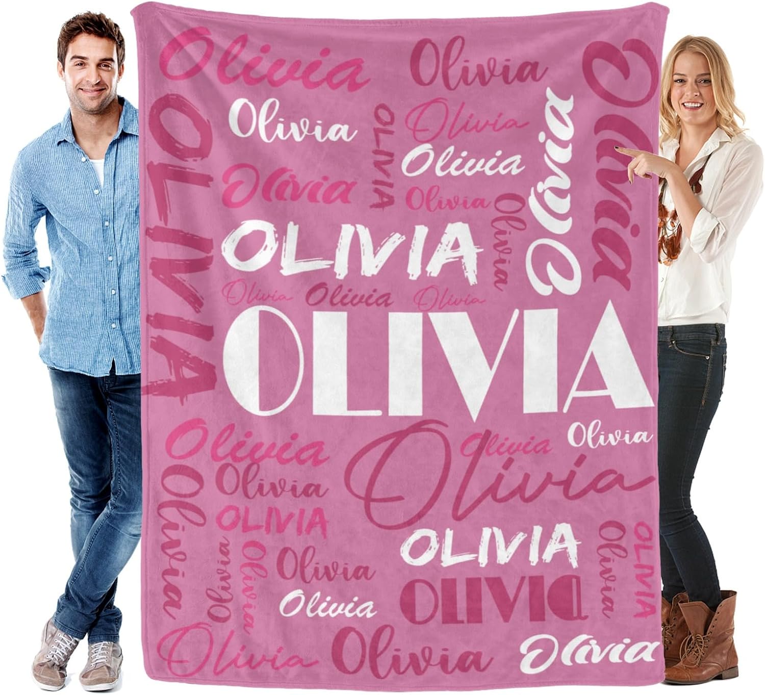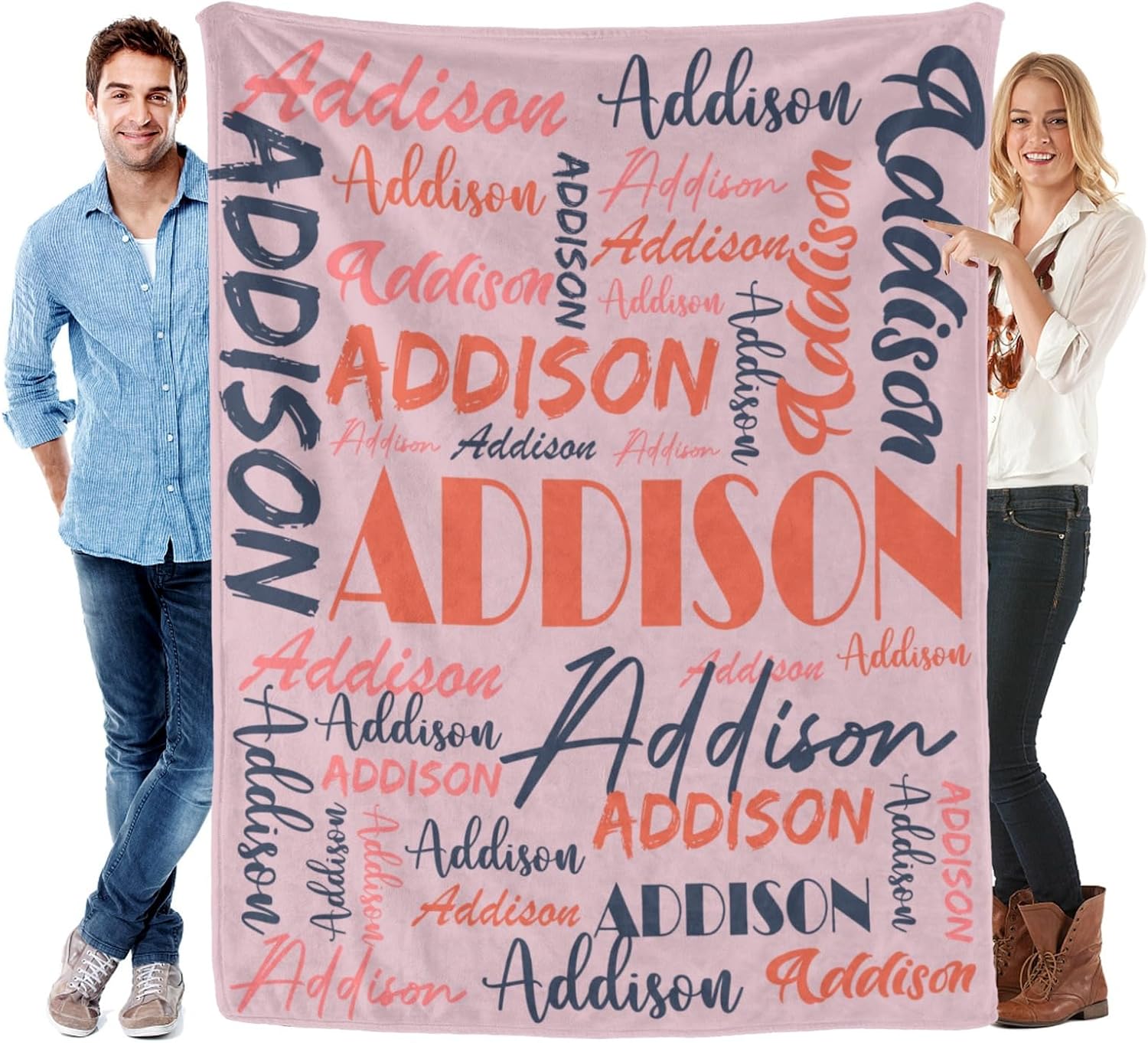 Features: 1.Design your own special fluffy plush ultra-soft micro flannel throw blankets with name or text you want. 2. Made of high quality anti-pilling flannel, which is soft touch, pilling resistance, wrinkle resistance, durable and comfortable, have a good touch and friendly to your skin, your kids, your family. 3. Suitable for all seasons, perfect for bed, sofa, camping, cold movie theater or traveling. 4. Easy to Care: Machine washable or hand washable, tumble dry at low temperature, holds several machine wash and dry beautifully. 5. No matter what name you provide, we will print them well on your personalized blanket, which will be the most unique gifts or souvenirs on various holiday, anniversaries. 6.Perfect gifts for Birthday, Christmas, Wedding, Anniversary Valentine's Day. How to Customize: This product is designed with the tools that you can create a very exclusive gift. 1.Choose the size and color you want 2. Click "Customize Now" button 3.Provide your names or your text,we will achieve your expected effect as plan 4.Add to cart. Attention Please: 1. The name you provide should be UPPERCASE name, up to 12 characters, letters only. Name will be replicated multiple times and fonts as displayed. 2.The other side of the blanket is white color.