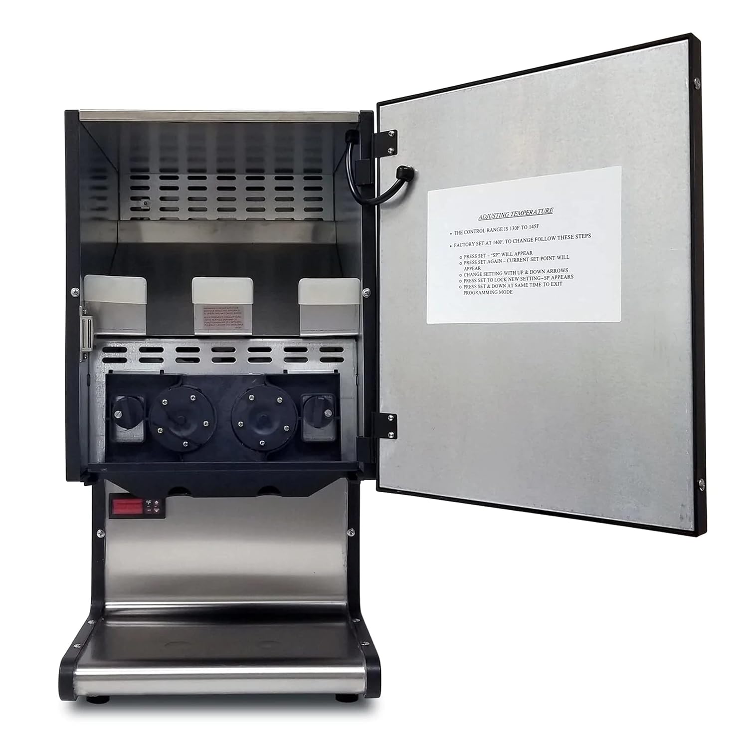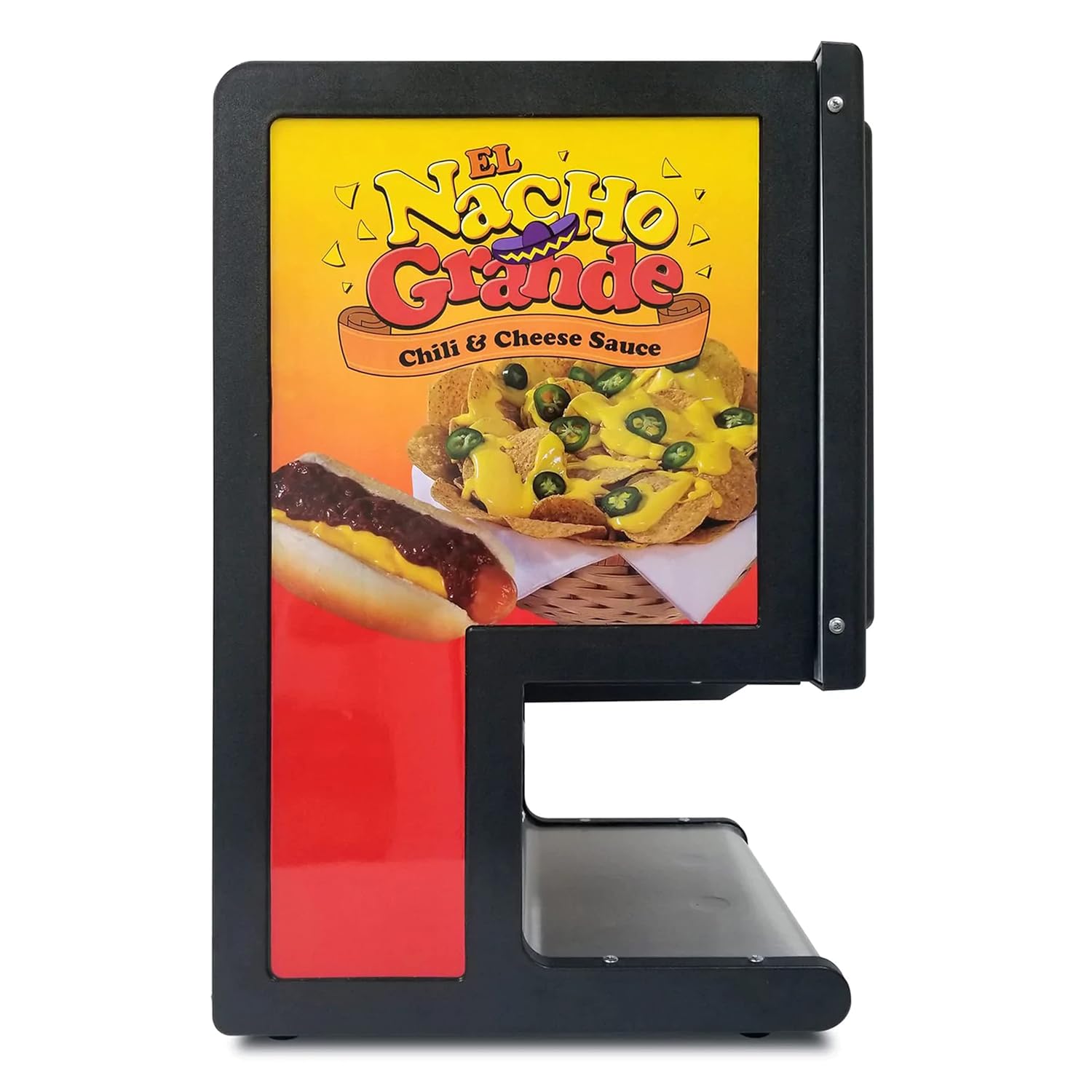 Supreme nachos equal supreme profits! Selling chili and cheese nachos fast and hot is a popular choice for busy self-serve locations. The Dual Cheese & Chili Dispenser #5301 sells both cheese and chili nachos fast and hot. Each side of the dispenser holds one 140 oz. bag and has dual peristaltic pumps to give you the most out of every bag! Try this dispenser at arenas, schools, bars, and more! Serve up both cheese and chili with speed, efficiency, and minimum mess. The Dual Cheese & Chili Dispenser #5301 from Gold Medal is built for high-traffic, self-serve environments like cinemas, stadiums, snack bars, cafeterias, or convenience stores. It holds two 140-oz bags (one for cheese, one for chili) and uses dual peristaltic pumps so you get nearly all of the product out of each bag — less waste, better margins. With a compact footprint, push-button dispensing, and digital temperature control, this unit keeps your toppings hot, ready, and consistent. Strong stainless steel food-contact areas make cleaning easier; the bold graphics help attract customer attention. If nacho or chili toppings are part of your menu, this dispenser helps you streamline service, reduce labor, and increase impulse upsells.