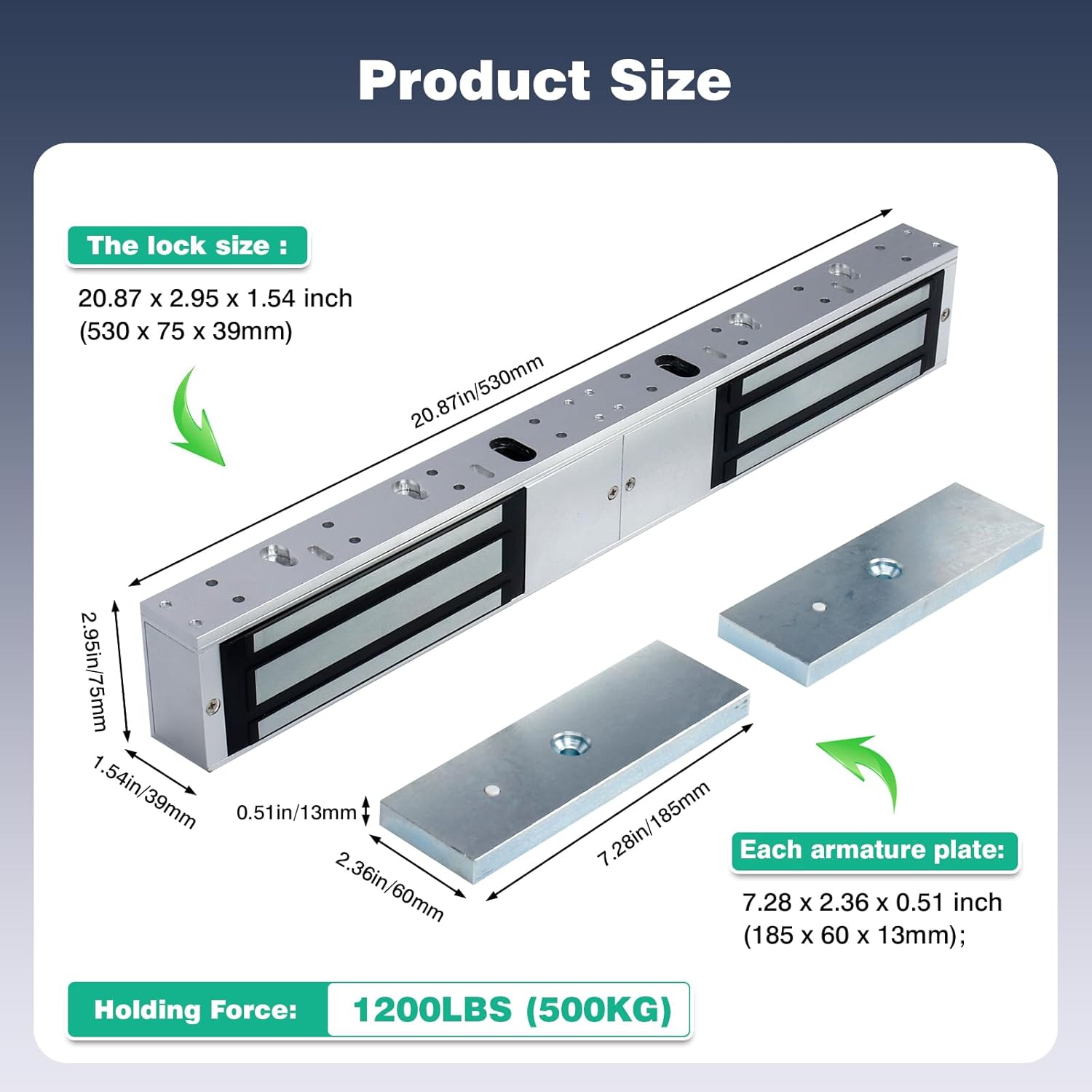 | Included Components | Dual Door Magnetic Lock 1200lbs |