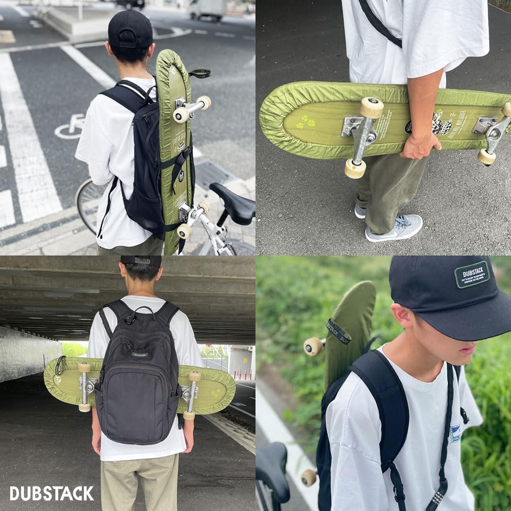 Tougher and Easier The Skateboard Cover [EARTH] allows you to take your precious skateboard with ease. Durable 5,000mm polyester material with double reinforced nose and tail for tough protection. Prevents damage to clothes, bags and cars from decking tape The military-inspired khaki green with a playful skull tag is a reliable board cover. Great protection for your skateboard Protect your bag, clothes or car from being scratched by deck tape during train, bicycle or car. Compact storage It comes with an elastic band and can be stored in a small space in your car or backpack when not in use. Fits regular boards Perfect size at 32 x 8 inches. When worn, it is slightly tight, but it has a beautiful silhouette for a smart look. Tough material and waterproof The polyester fabric is water repellent, and the underside is waterproof (5,000 mm) and has been subjected to a waterproof surface for tough use. Increased strength construction Double fabric construction for increased durability in high-stress nose and tail areas Adult Earth Color Timeless muted khaki green Naturally blended colors for an adult skate style. Original Design Tag Skull tag adds a playful touch to a rugged design. Unique accent inspired by American traditional tattoos. Compatible Sizes Skateboard Cover [EARTH] DSB-DC01 Compatible Size: 32 x 8 inches