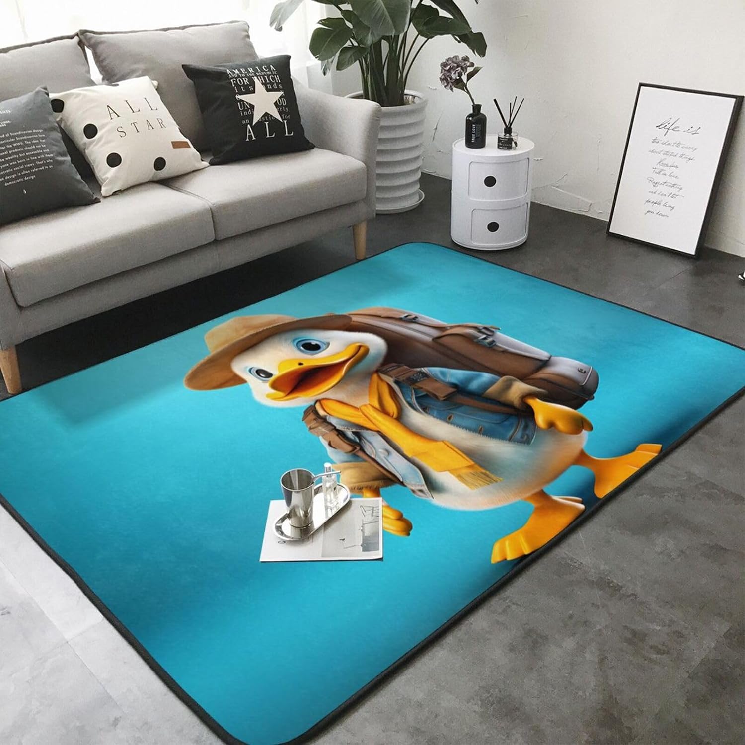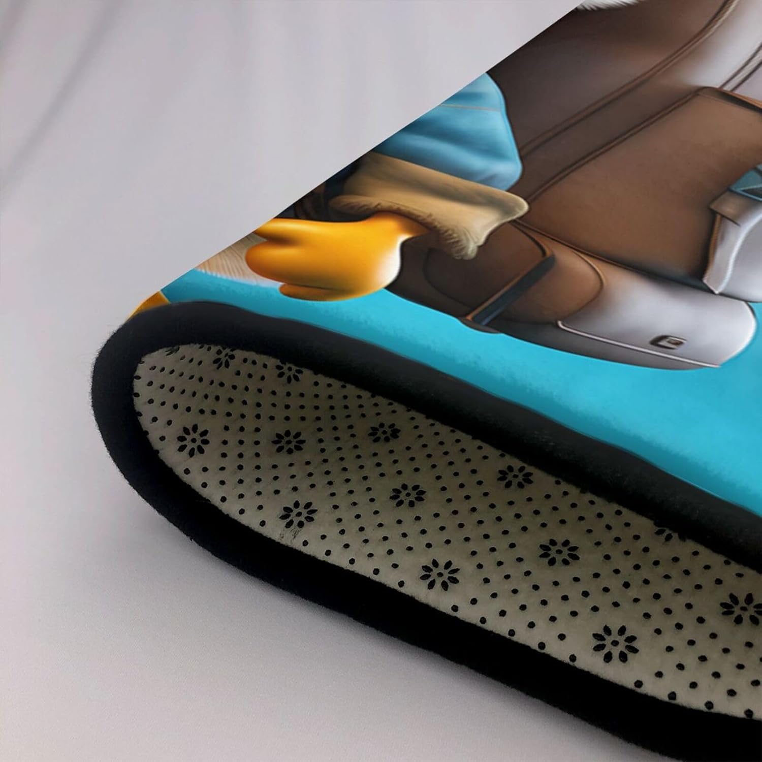 This Duckling across backpack printed decorative carpet is made of polyester flannel, which is delicate and soft to the touch, with tight and regular pile. It will not pill or fade after long-term use, and will always look like new. The middle layer uses high-density memory foam, which can automatically adjust according to the foot shape and pressure, providing precise massage for tired feet and relieving fatigue. The bottom is designed with non-slip plastic bottom non-woven fabric, which can firmly grip the ground even when it encounters water or on smooth surfaces, ensuring the safety of the elderly and children. It is easy to clean daily, can be machine washed or hand washed, and is wear-resistant and does not shed. Exquisite stitching technology and high-quality tailoring, with smooth edges, are suitable for a variety of scenes such as bathrooms, living rooms, and bedrooms. Non-slip, comfortable, and durable, adding a touch of intimacy and elegance to your life.