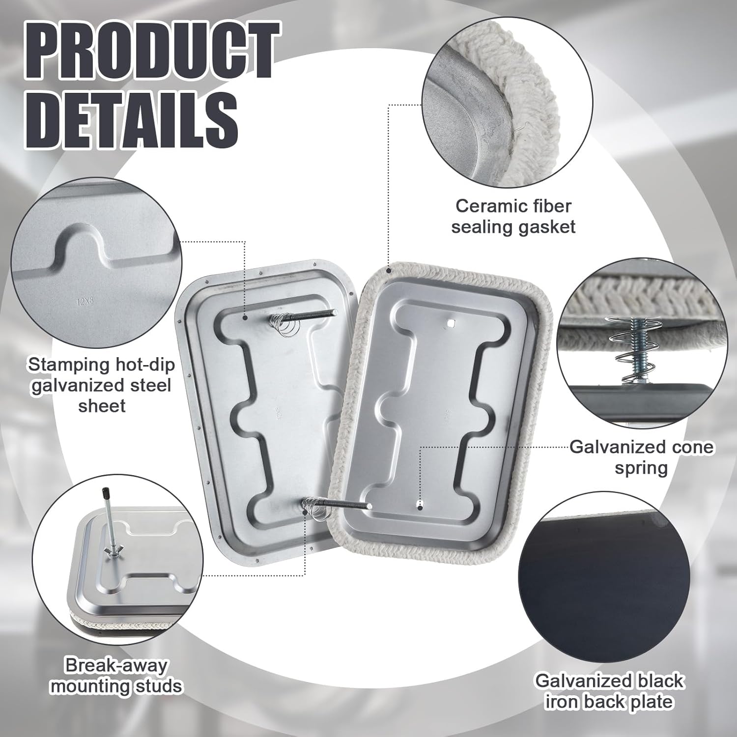 Features: Ideal for Maintenance and Repairs This attic access door is perfectly suited for maintaining and repairing high-temperature and oil pipeline systems. Its smooth opening and closing mechanism make it an optimal choice for both professional and DIY use. Perfect Fit and High-Quality Construction The duct access door features a precise 12x8 inch opening and a sturdy 13x9 inch door body, ensuring a perfect fit for your needs. Crafted from double-layer stamped hot-dip galvanized steel, this attic access door delivers unmatched durability. Specifications: Material: Alloy Steel Color: Silver Size: 12 x 8 inch Package includes: 1 x Duct Access Door Notes: Manual measurement, please allow slight errors on size. The color may exist a slight difference due to different screen displays.