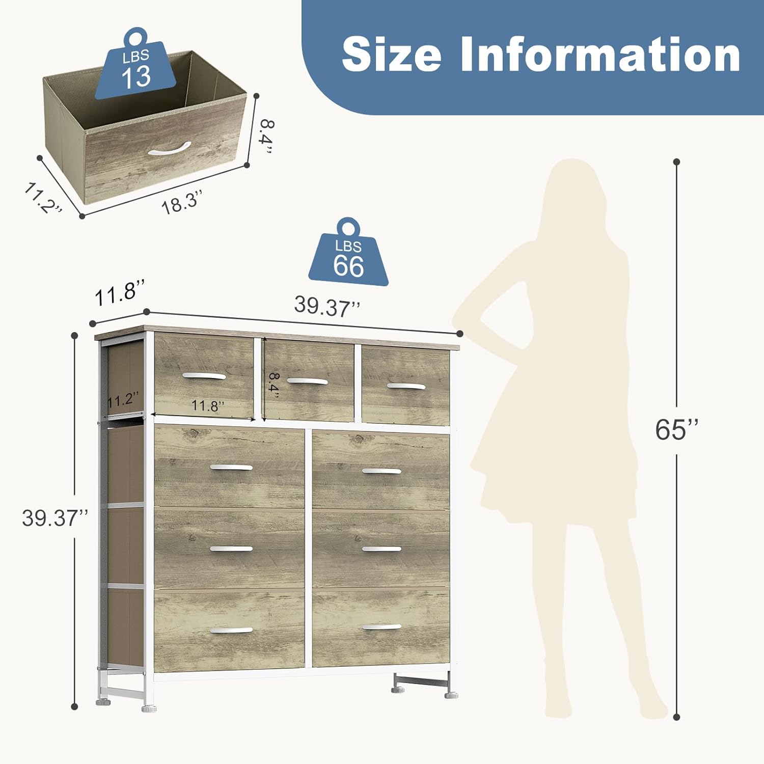 | Size | 11.8"D x 39.4"W x 39.5"H (9 Drawers) |