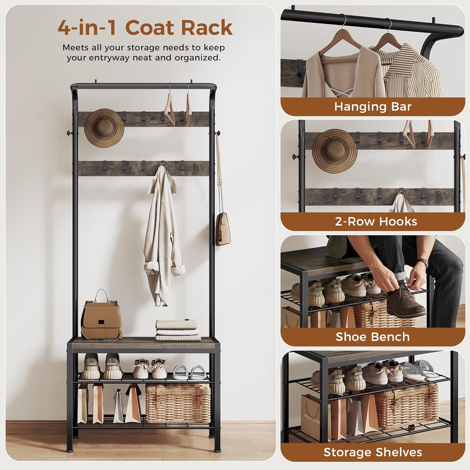 | Item Type Name | Entryway Bench with Shoe Storage and Hooks, 4-in-1 Coat and Shoe Rack for Entryway, Mudroom Storage Organizer with Shelves |