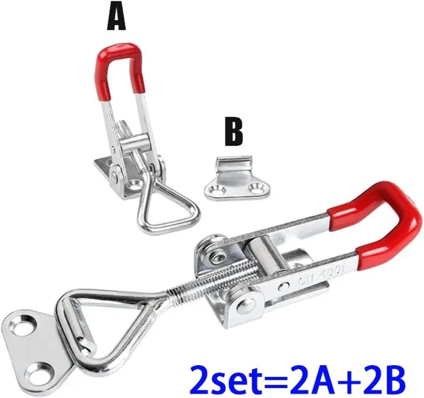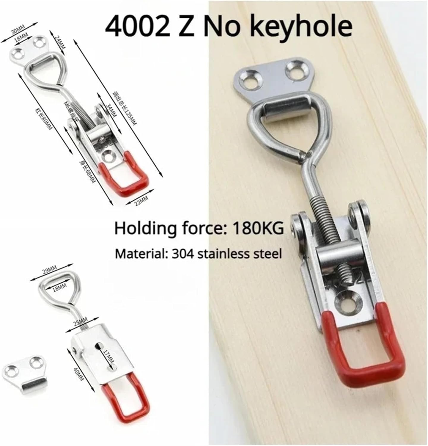 Installation Tips: Before installation, confirm the mounting position of the gate and fence to ensure the latch aligns with the door frame for smooth self-locking. Use the included hardware to fix the latch post and receiver post to the gate frame; no extra tools are needed, and the low-profile design can be installed to blend with the gate style for a neat finishApplications:Cabinet lid;Smoker door;Freezer door;Tool and toy box;Storage case;Making jig;Hatches;Tool fixtures;Connecting movable parts;Storage lockerType: Latch Door Clampcolour: red + silverMaterial: Iron galvanized / 304 stainless steelPackage Contents:3set=2 x Toggle Clamp Latch+2 x Latch Plate(1set=1 x Toggle Clamp Latch+1 x Latch Plate)Only the above package content, other products are not included.Note:Light shooting and different displays may cause the color of the item in the picture a little different from the real thing. The measurement allowed error is +/- 1-3cm.