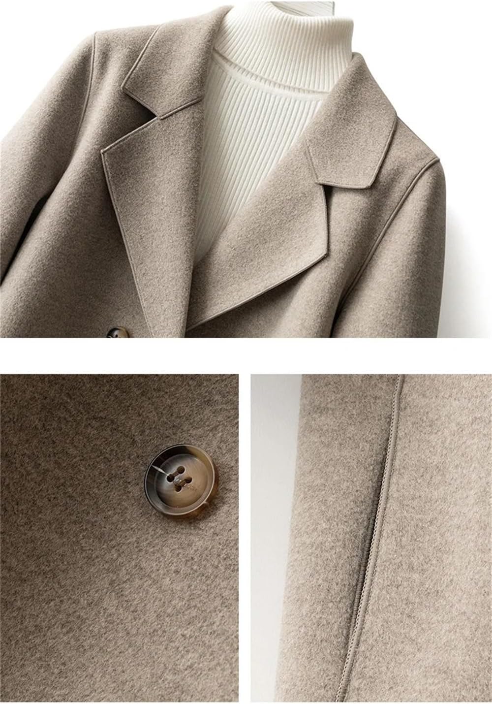 Material:SynthesisSeason:Autumn/WinterAge:MIDDLE AGEModel Number:Wool CoatStyle:CasualSleeve Style:RegularType:SlimClosure Type:Double BreastedCollar:V-NeckPattern Type:SolidClothing Length:RegularSleeve Length(Cm):FullGender:WOMENOuterwear Type:Wool & Blends