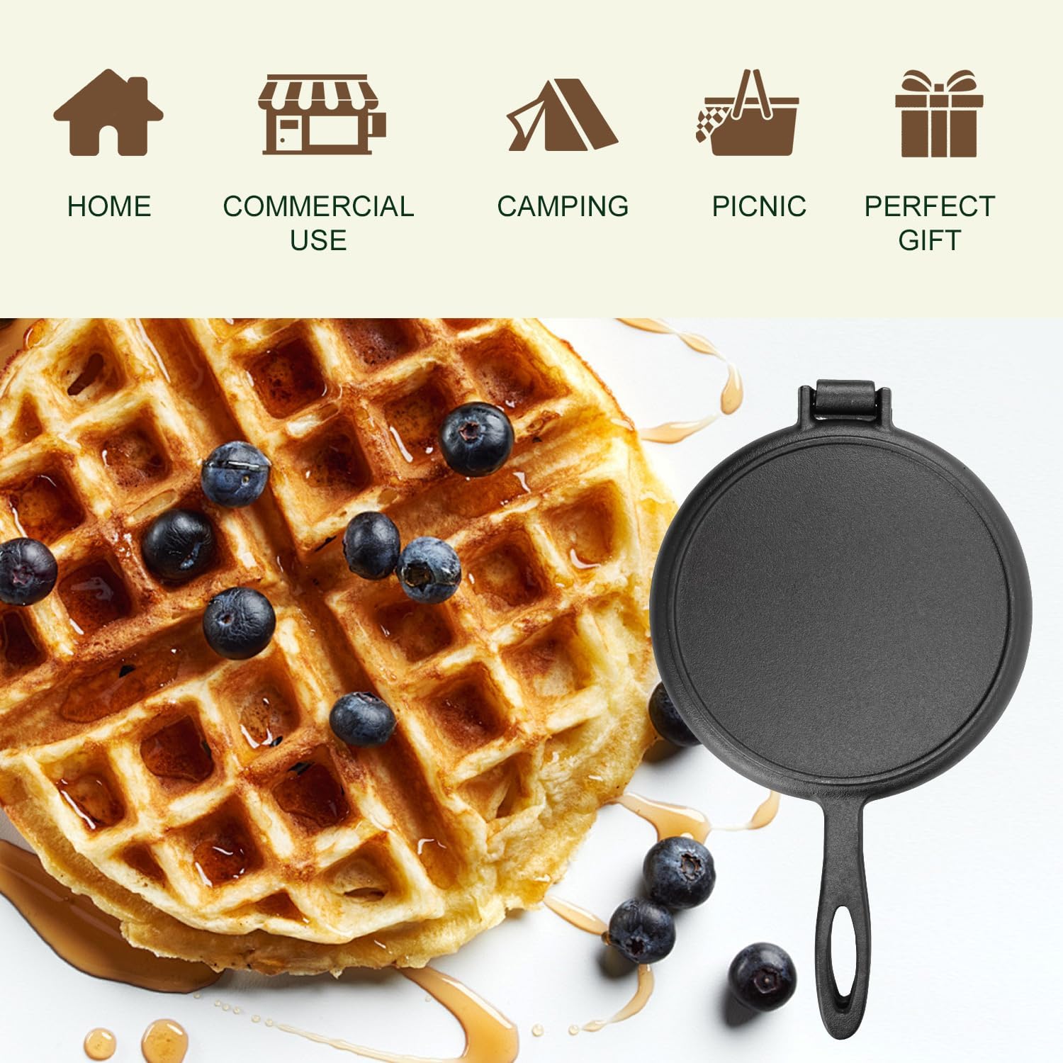 Made of cast iron, for a professional cooking experience: Carefully crafted from high-quality cast iron, it boasts excellent heat conductivity and retention. This means extremely even heat distribution and consistent baking, ensuring each waffle achieves the perfect golden-brown color—crispy on the outside and soft on the inside.