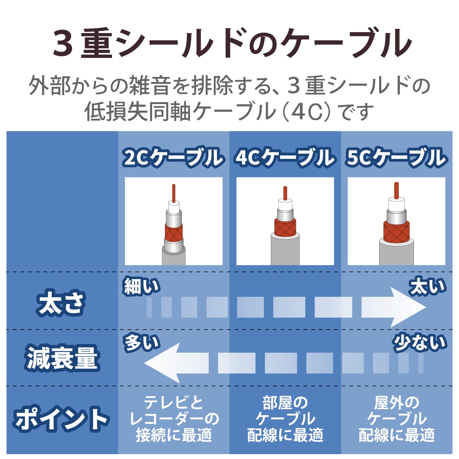 Specifications: ■ Frequency band: 10-3,224MHz 2K4K8K broadcast compatible ■ Cable: 4C ■ Plug: Straight plug on both ends ■ Impedance: 75Ω ■ Length: 9.8 ft (3 m) ■ Color: Light Gray 【Description】 ■ High shield low-loss cable supports 2K, 4K, and 8K broadcast. ■ Uses low-loss 4C cable. ■ Comes with straight plugs on both ends for convenient connection to a TV or recorder. ■ Recommended for connecting a splitter to a TV or a computer with tuner. ■ Shielded plug is used to resist interference waves. ■ Gold-plated plug prevents contact failure. ■ Cable length 9.8 ft (3 m)