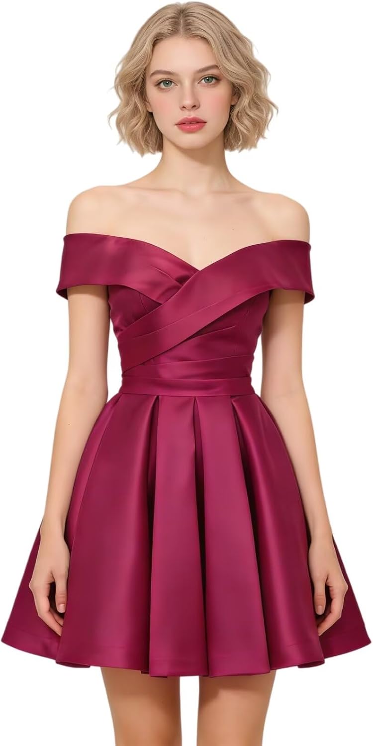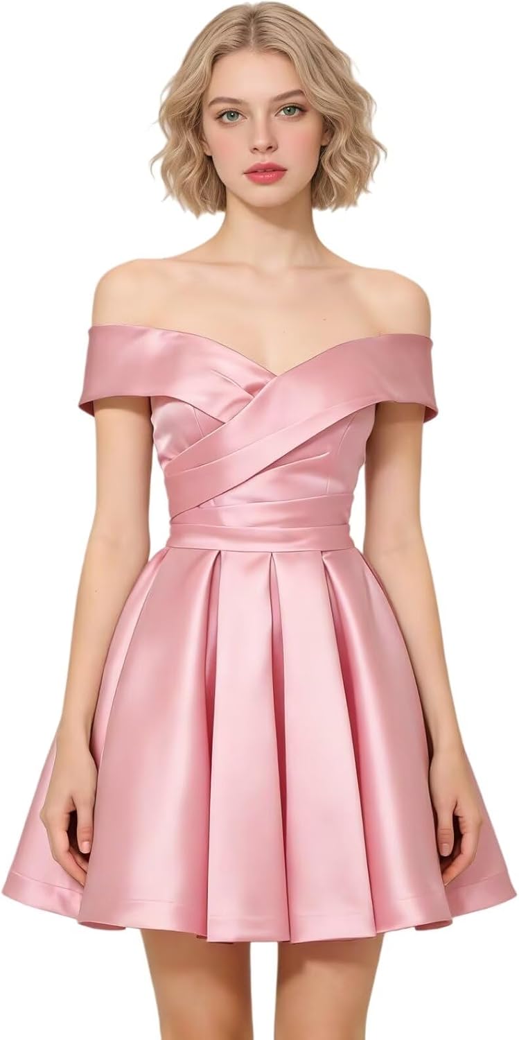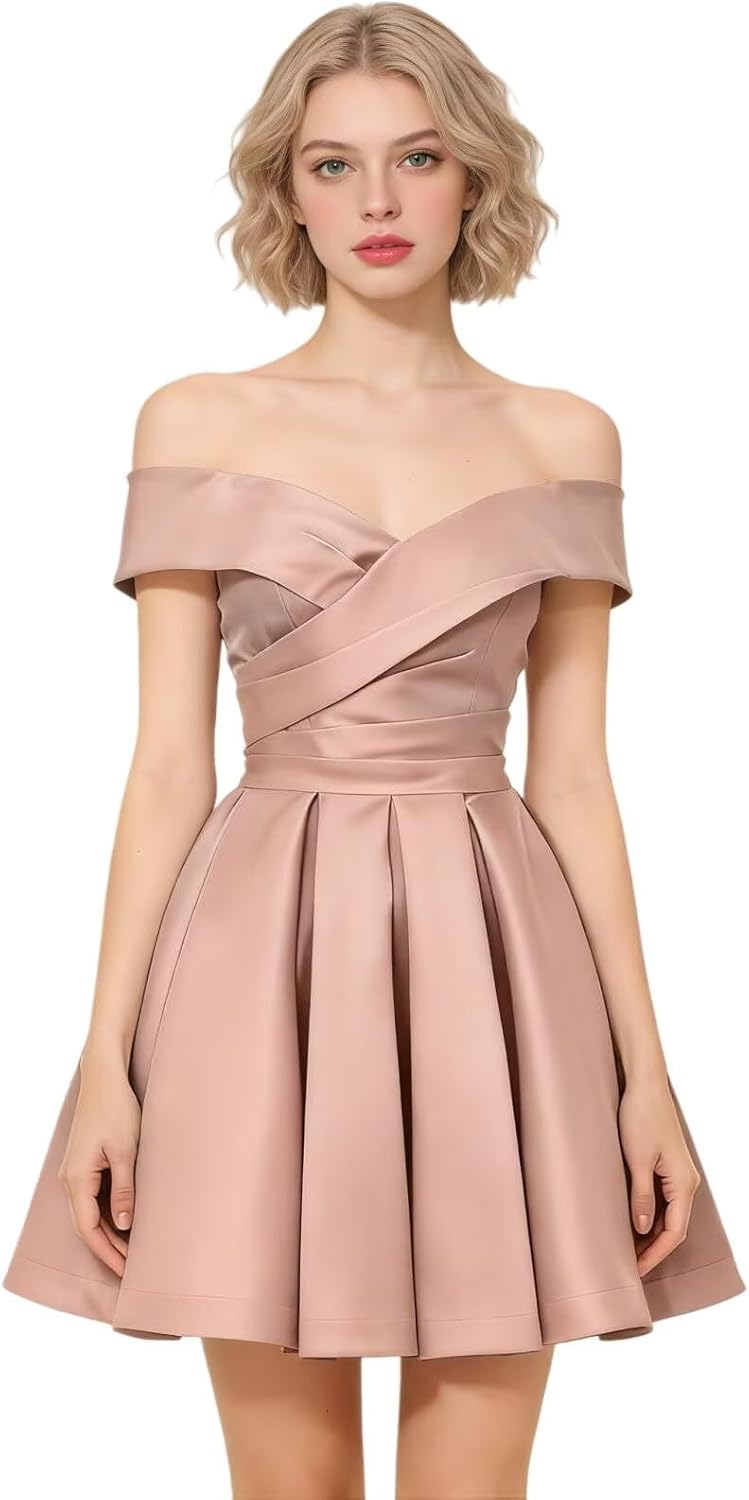 Welcome To DydszDydsz We focus on Formal Dresses and Wedding Dresses for Many years.we will continue to provide better price and quality products for our customersFeatureGender:Womens,Teens/Teenager,JuniorsFabric:SatinBuilt-in Bra:YesNeckline:Off ShoulderSleeve:Short SleevesLength:Mini ,ShortBack Design:CorsetSize Type(Our Brand):US Size 2-26W Silhouette:A LineEmbellishment:Ruffled, PleatedNote1. The real color of the item may be slightly different from the pictures shown on website due to camera quality and monitor settings. Photos are taken in natural light with no flash.2. Please allow slight deviation for the measurement data. 3. For accurate shipping please feel free to contact our customer service4.Any more questions, please do not hesitate to contact us. We are always at your servicePlease pay more attention to the following details when returning1.Please do not remove the tag. 2.Hang on the dress to make perfume fade away. 3.Packing the dress well in original bag.Thanks for your kind understanding!Measurements1.Bust _____Inch2.Waist _____Inch3.Hips _____Inch4.Shoulder to Shoulder _____Inch5.Shoulder to Floor(without shoes) _____Inch6.Height(without shoes) _____Inch7.Heels _____InchWashing care1.Machine wash or hand wash cold water,hand wash recommended2.Do not bleach3.Hang to dry