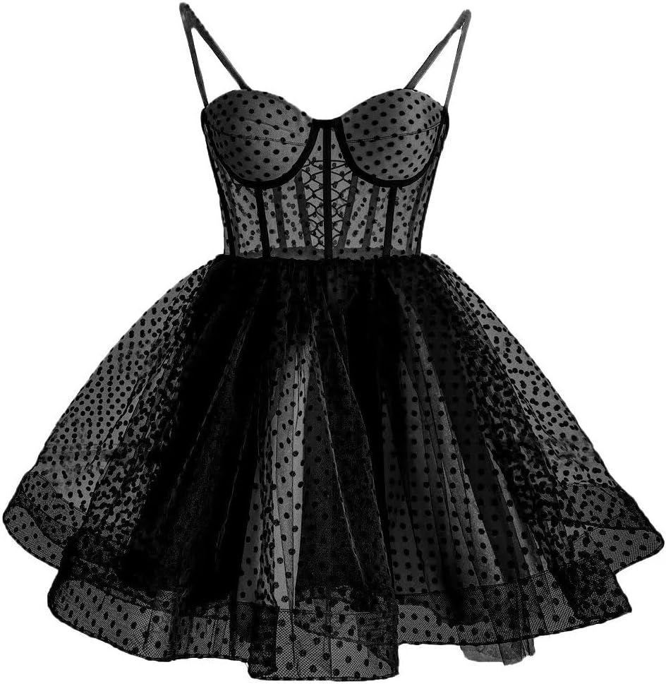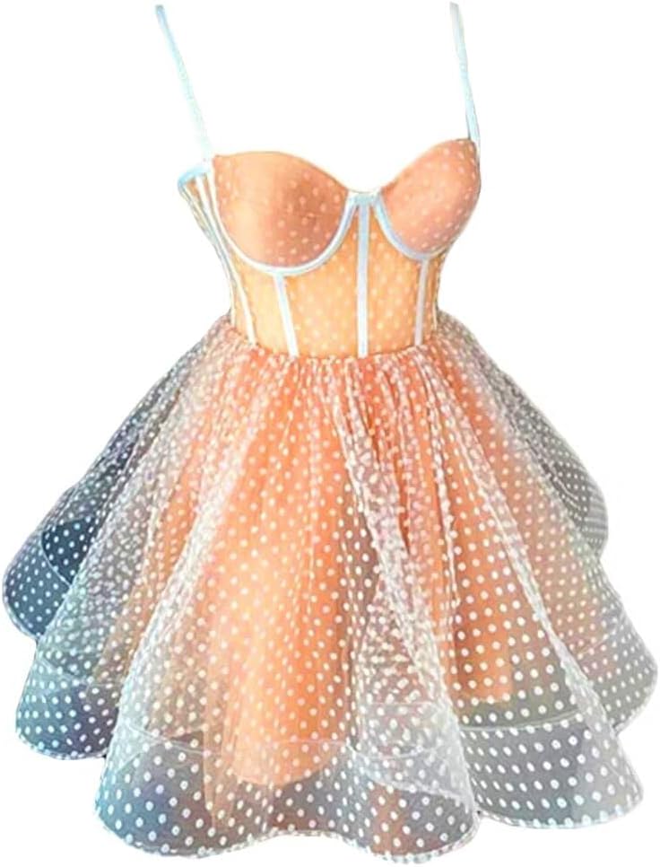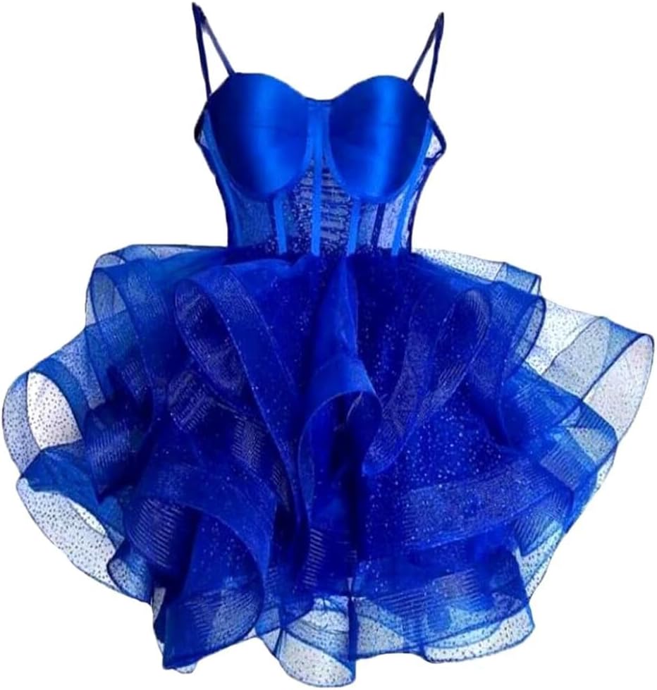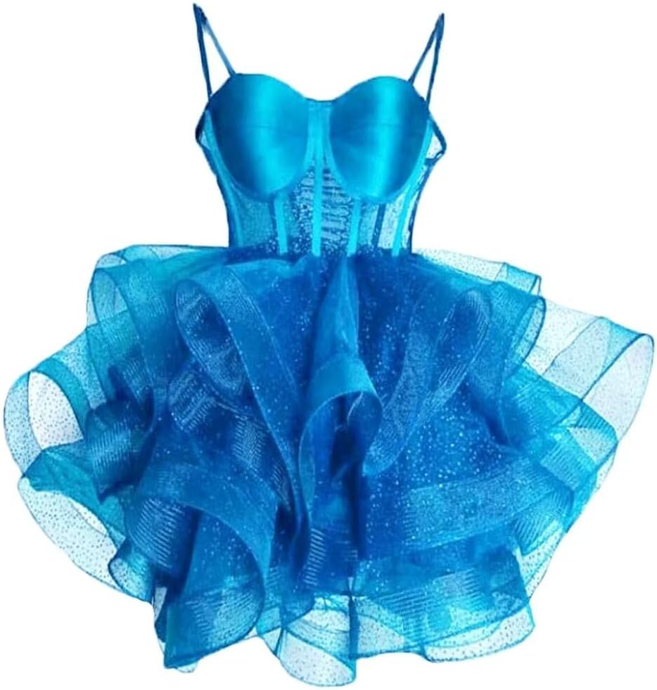 Welcome To DydszDydsz Sexy Women's Spaghetti Straps Sweetheart Lace Up Illusion Tiered Puffy Tulle Short Prom Homecoming Dresses Mini Party Cocktail Club Ball GownFeatureGender:Womens,Teens/Teenager girlsFabric:TulleBuilt-in Bra:YesNeckline:SweetheartSleeve:Spaghetti StrapsLength:Above Knee LengthBack Design:CorsetSize Type(Our Brand):US Size 2-26W Silhouette:Ball GownEmbellishment:Tiered,RufflesNote1. The real color of the item may be slightly different from the pictures shown on website due to camera quality and monitor settings. Photos are taken in natural light with no flash.2. Please allow slight deviation for the measurement data. 3. For accurate shipping please feel free to contact our customer service4.If you want to rush the order. Please choose EXPEDITE and inform us the DATE of your big day in advance. That would be really appreciated. 5;Any more questions, please do not hesitate to contact us. We are always at your servicePlease pay more attention to the following details when returning1.Please do not remove the tag. 2.Hang on the dress to make perfume fade away. 3.Packing the dress well in original bag.4.Please return the dress within 7 days after receipt. Thanks for your kind understanding!Measurements1.Bust _____Inch2.Waist _____Inch3.Hips _____Inch4.Shoulder to Shoulder _____Inch5.Shoulder to Floor(without shoes) _____Inch6.Height(without shoes) _____Inch7.Heels _____InchWashing care1.Machine wash or hand wash cold water,hand wash recommended2.Do not bleach3.Hang to dry