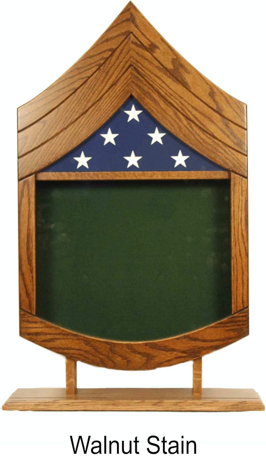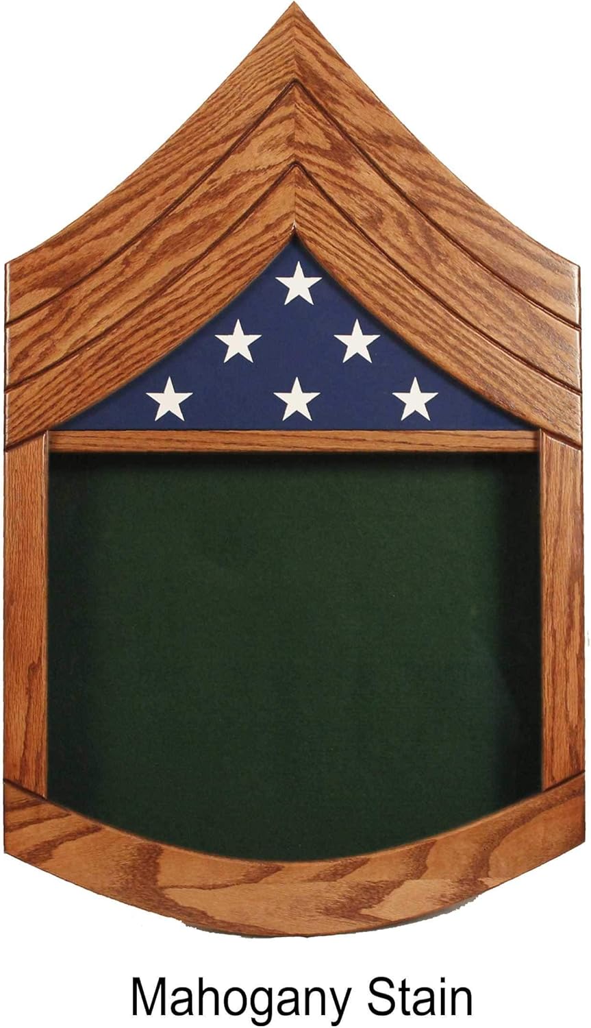 Shadow box in the shape of the Army enlisted E-6 stripe.