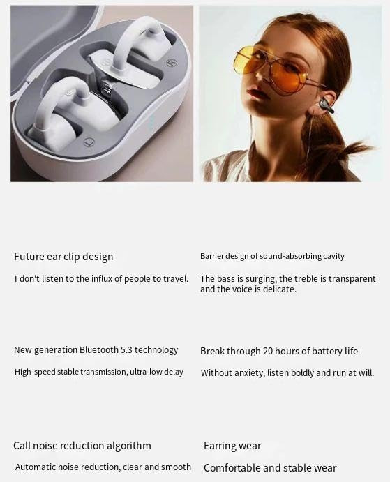 JNXIKOU Intelligent movement, elegant life Why do we love our work? Integrate art design into digital equipment, let you enjoy intelligent and convenient life in elegant and luxurious life. What makes our product unique? JNXIKOU's mission is to put customers first and strive to provide customers with 100% satisfaction. Keep Pace with The World All The Time Don't miss every sound in the world, whether you're immersed in learning or busy with work. The Bluetooth Headset chip helps your device match faster, which can provide you with a stronger and more stable signal in various complex environments without worrying about signal interruption. These Wireless Earbuds and Open Ear Headphones keep the sound crisp and balanced, with deep bass, providing loud surround sound and maximizing the sound stage. In addition, the built-in high-quality microphone can enhance your voice and make you sound clear and loud in calls. Our ergonomic Bone Conduction Headsets makes it very comfortable to wear even with glasses and will not fall off easily. You can use it in many scenarios, such as running, gym, etc. The nano-coated waterproof material professionally protects the interior from water and sweat and prolongs the service life. Perfect for users of all ages, this is the best gift for elders, children, friends, couples. JNXIKOU has an official box for you to store your headphones. JNXIKOU Wireless Headphones are compatible with most devices such as computers, tablets, mobile phones, etc. It meets your daily needs well and facilitates your life.
