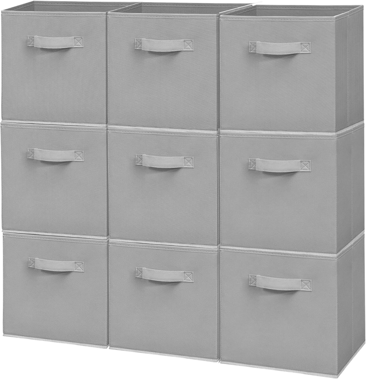 Easi Storage Cubes, 11 Inch Fabric Storage Bins, Set of 9, Foldable Collapsible Cube Organizer with Handles, Closet Shelves Office Nursery Storage, Cubby Storage Bins for Toys Clothes Books, Beige