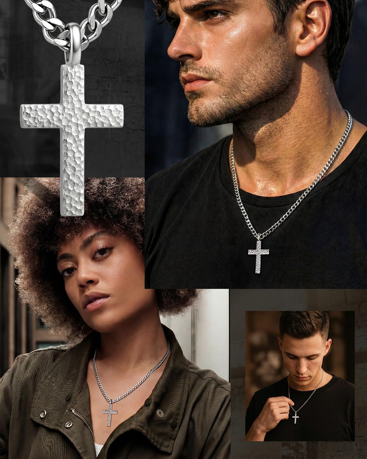 Premium Anti-Tarnish Sterling Silver Faith Symbol: Molenia cross necklace for men features a genuine 925 sterling silver hammered cross pendant with an advanced fade-resistant, waterproof finish that preserves its brilliant, high-quality shine - even after months of daily wear, showers or sweat-soaked workouts. This hypoallergenic, nickel-free silver cross jewelry won't irritate sensitive skin, never tarnishes or rusts, and delivers a lasting symbol of faith that looks and feels premium