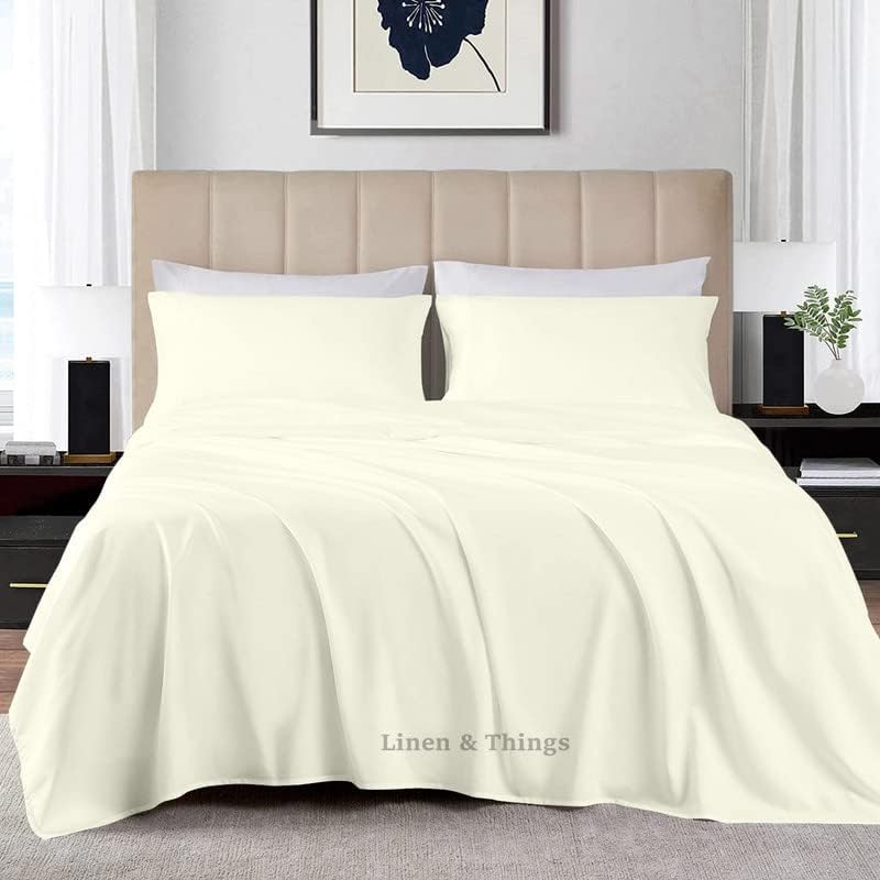 Eastern King Size Sheet Set Egyptian Cotton 800 Thread Count - 4Pcs Bed Sheets Set fits Upto 8-12" Deep Pocket, Silky Soft Sateen Sheets - Ivory Solid