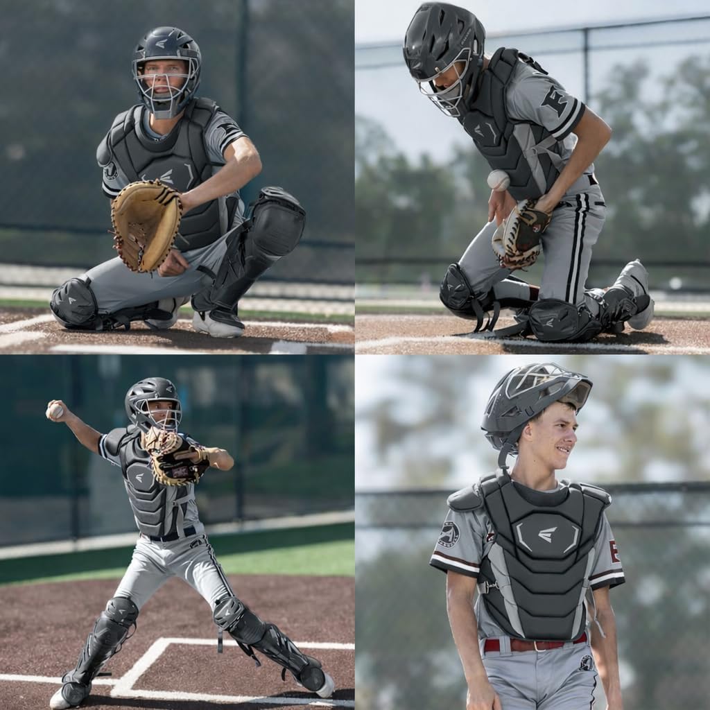 Take command of the game with the Easton Phenom Series Catcher’s Set, a complete catcher’s gear system designed for athletes who demand elite protection, superior comfort, and unrestricted mobility behind the plate. Built with advanced safety technology and athlete-focused engineering, the Phenom series delivers the performance serious catchers need to control the game inning after inning. Whether you're blocking pitches in the dirt, framing strikes, or throwing out runners, this gear provides the protection and confidence needed to perform at your best. The Easton Phenom Catcher’s Set includes a hockey-style catcher’s helmet, full-coverage chest protector, and advanced multi-hinge leg guards, creating a complete protective system engineered to work together. Each piece is designed with durable materials and athlete-focused technology that balances protection, comfort, and mobility. The result is a high-performance catcher’s gear set trusted by players at youth, intermediate, and adult levels. Complete Catcher’s Gear System The Phenom Series provides everything a catcher needs in one convenient box set. Each component is engineered to provide maximum protection while maintaining the flexibility and movement necessary for high-level play. The catcher’s helmet features a ventilated ABS shell paired with a high-tensile steel mask that offers wide-angle visibility and exceptional durability. Strategic ventilation helps dissipate heat during long innings, while triple-density foam padding provides comfort and impact absorption. The interior BioDri liner helps manage moisture, keeping players cool and dry even during intense summer games. An ergonomic chin cup and adjustable design ensure a secure fit that stays comfortable throughout the entire game. The chest protector is designed to provide elite protection without restricting movement. Articulated foam blocks move naturally with the body, allowing catchers to block, throw, and react quickly behind the plate. Adjustable shoulder caps allow for personalized coverage, while the rear strap system with elastic components creates a secure, connected fit that stays in place throughout the game. A self-centering waist strap and heavy-duty steel waist clip keep the protector locked in place, ensuring consistent protection and stability. Completing the system are the Phenom leg guards, built with Easton’s innovative Multi-Hinge technology. This design allows the guards to articulate with natural knee movement, providing excellent flexibility without sacrificing protection. Contoured shin wrapping helps prevent the guards from sliding during play, while plush knee padding and a flattened knee plate provide stability and comfort when blocking pitches. An added instep extension protects the top of the foot from foul balls and wild pitches, making these leg guards ideal for demanding defensive situations. NOCSAE Certified Protection Safety is essential for catchers, and the Easton Phenom Series meets the rigorous NOCSAE (National Operating Committee on Standards for Athletic Equipment) certification standards. The helmet and chest protector are tested and certified to meet current safety requirements, helping protect players from impacts and ensuring compliance with league rules at many competitive levels. The chest protector is also designed to meet standards for Commotio Cordis protection, offering added peace of mind for players, parents, and coaches. This level of protection makes the Phenom Series suitable for youth leagues, travel ball, high school programs, and adult recreational play. Built for Comfort and Performance Catching is one of the most demanding positions in baseball, requiring constant movement, focus, and durability. The Phenom Series was engineered with player comfort in mind so catchers can stay focused on the game instead of their equipment. Strategic ventilation throughout the helmet and gear helps maintain airflow and reduce heat buildup during long games. Moisture-wicking BioDri liner technology helps keep sweat under control, while soft interior padding enhances comfort during extended play. The ergonomic design ensures that each component moves naturally with the body, allowing players to squat, block, and throw without restriction. From quick pop times to aggressive blocking in the dirt, the Phenom Series supports the fast, explosive movements that define elite catching.