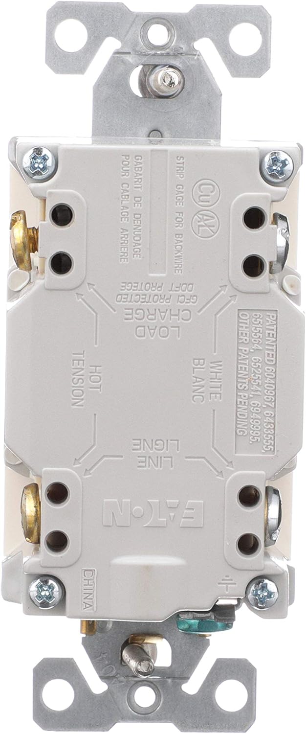 Eaton's GFCI Self-Test Tamper Resistant Duplex Receptacle with Nightlight provides protection from dangerous electrical shocks caused by ground faults. Our GFCI devices automatically self-test periodically to ensure GFCI protection and continuous safety. In addition to being tested to the highest standards to help ensure safety, Eaton's GFCIs will deny power and prevent re-setting if the device is no longer able to provide safe, protected power. The built-in indicator lights provide quick notification of a tripped or “end of life” condition. Additionally, tamper resistant (TR) GFCIs feature a built-in UL listed safety shutter system that prevents the insertion of foreign objects into the receptacle openings.