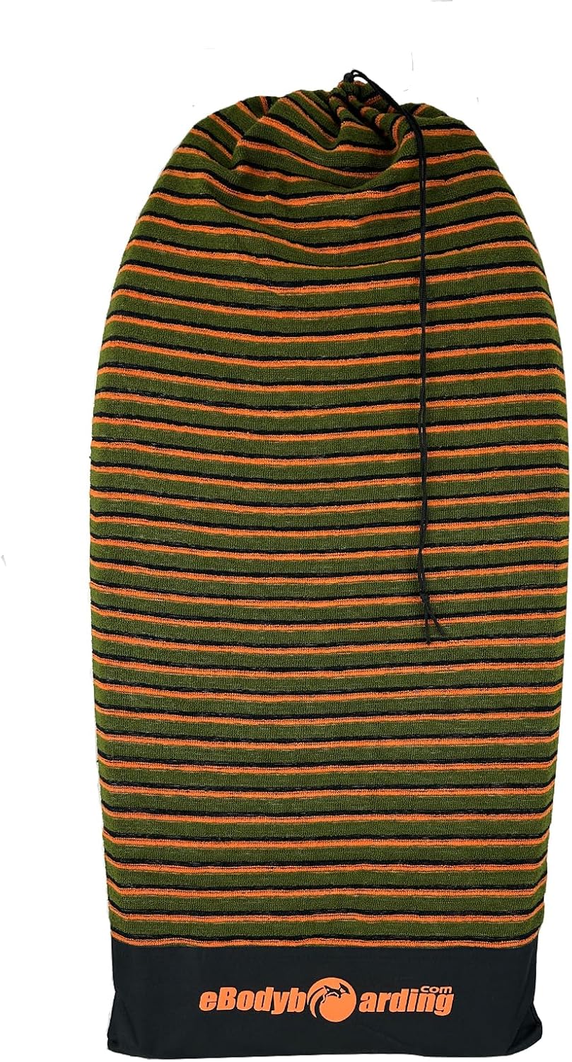 We've flipped the script on the board sock...pun INTENDED! Old board socks protect the nose of the board, but ours puts the reinforced nylon on the tail end of the board, and cinches up on the nose end! Padded tail with stretch fabric to protect your bodyboard from bumps, scratches, and UV rays. Prevents wax from melting on your car's interior when travelling to the beach! Great to use for additional protection when storing your board.Features:Padded Tail with stretch fabric protects the most delicate part of your boardHigh-quality fabric, lightweight and stretchyEasy to clean and store, with a drawstring strap. Easy to useProtect your board from dings, bumps, scratches and UV raysProtects your vehicle's interior from getting wax and water all over itHas a small inside hook-and-loop pocket for storing wax or keys or sunscreen.Portable and easy to use. Stretches over your board and protects the tail.Adjustable drawstring with cord lock to keep it on your boardDimensions:Size: SmallLength: 95cmWidth: 50cmDesigned For: Bodyboards under 40"(NOTE: NOSE WILL BE EXPOSED A BIT ON A 40" BOARD)Size: LargeLength: 115cmWidth: 55cmDesigned For: Bodyboards over 40.5"- 45"(NOTE: NOSE WILL BE EXPOSED A BIT ON A 45" BOARD)