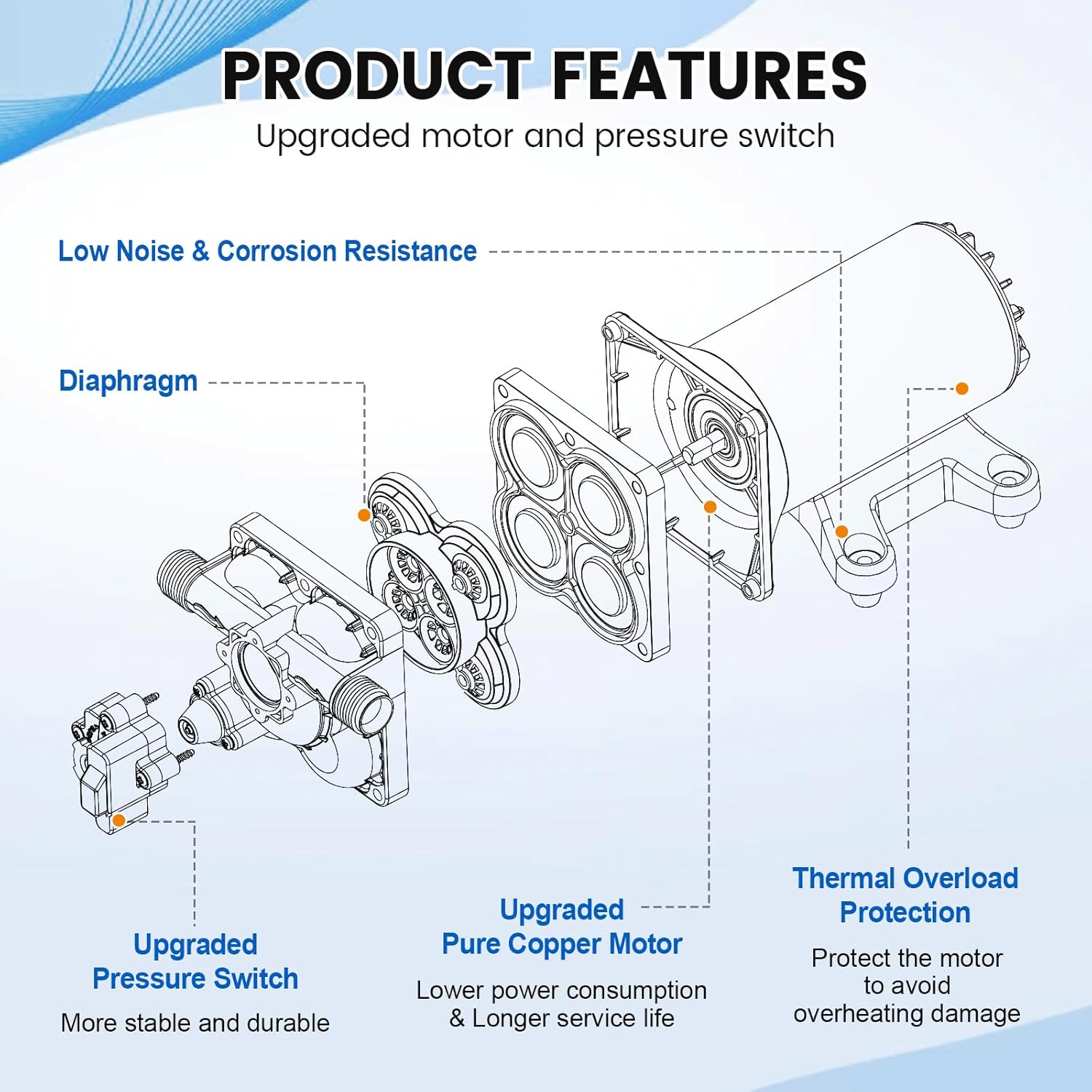 | Model Number | 12V-5.5GPM-70PSl(Garden Hose Adapter) |