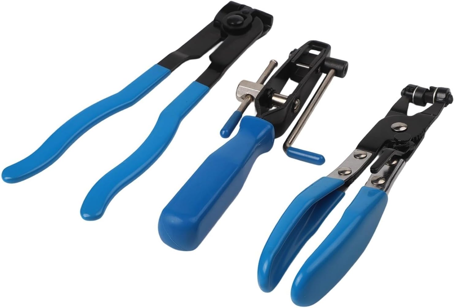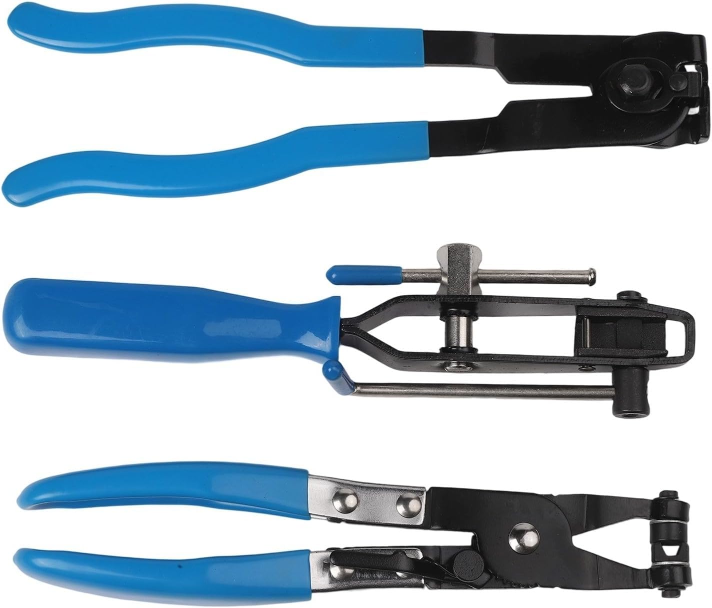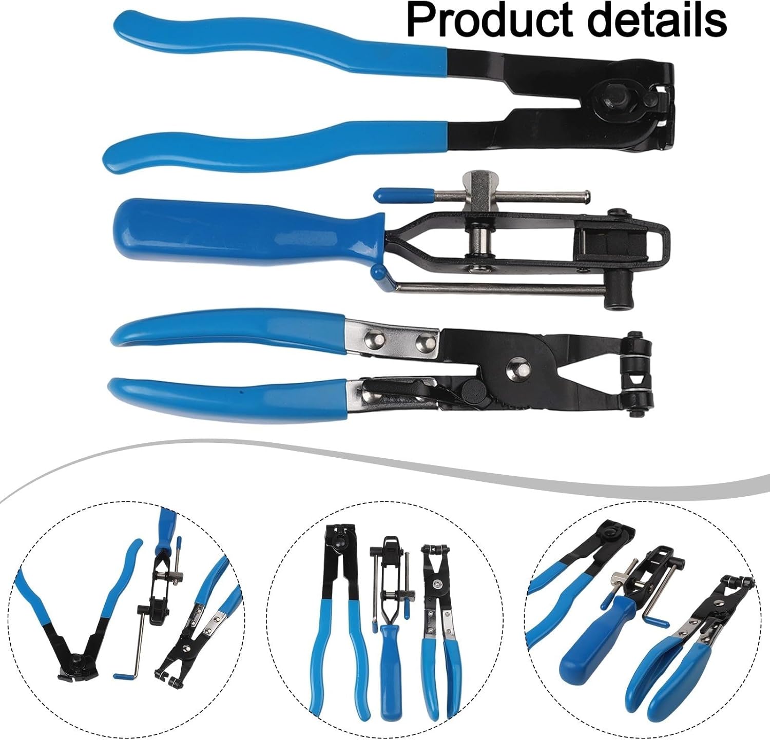 Product description Features:*Comprehensive Tool Kit: This kit includes 1 swivel flat band hose clamp pliers, 1 for CV clamp tool, and 2 for CV joint boot clamp pliers, providing a complete solution for your automotive needs. *Efficient for CV Boot Installation: The included for CV joint boot clamp pliers allow for fast and simple tensioning of for CV boot banding straps, featuring a built-in cutter for quick adjustments. *Versatile Hose Clamp Pliers: The swivel flat band hose clamp pliers are designed to reach tight spaces, with a locking ratchet that holds clamps open for easy installation and removal at any angle. *User-friendly Operation: The straightforward design allows for easy wrapping and securing of clamps, making the installation process efficient and hassle-free, even for beginners. *Time-saving Performance: for IDEAL for those who frequently work on vehicles, this kit significantly reduces the time needed for hose clamp installations, transforming a cumbersome task into a quick and manageable one.Specifications:*Product Name:Dust cover ball cage clamp set*Material:Alloy Steel, High Carbon Steel*Handle Material Rubber*Size:As shown in the picture*Color:BluePackage Content:1*ball cage clamp1*cutting pliers1*tube clamp Manufacturer Contact Information no