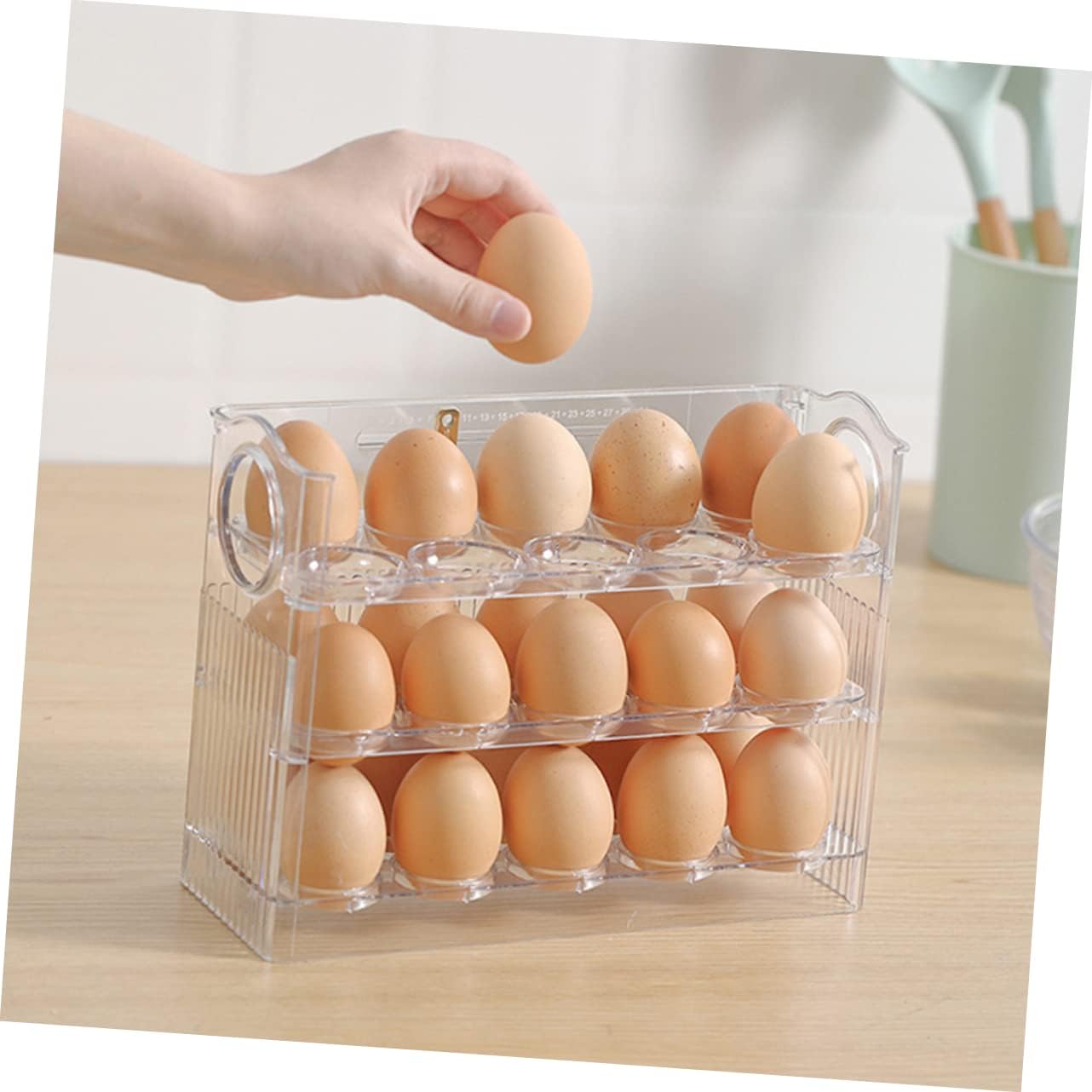 Package Include 1 x Egg Holder Organizer Features -Size:26.00X20.20X10.00cm/10.22X7.94X3 fridge door egg rack. -Color:As Shown Egg Storage Container -Material:PET Multi-Grid Egg Box -Tidy up your refrigerator to keep your eggs fresh and prevent it from being crushed or smashed egg holder for refrigerator. -Our refrigerator egg storage box is reliable and reusable, making them a great organizer in your kitchen egg tray for refrigerator. -The egg holder is suitable for egg storage and will not be damaged by rolling, unique and practical Organizer For Egg. -Suitable for refrigerator, kitchen countertop, freezer, fridge, kitchen cabinets, easy to use egg storage rack. -Large capacity, the egg storage container can be placed many eggs in each layer for storage Plastic Egg Box.Goods Descriptionfridge egg drawer This egg storage holder solve this problem which can keep the eggs safe while keeping the eggs fresh, they can avoid accidental cracking of eggs and is a must-have for the family.Organizer For Egg Everyone knows that eggs are very fragile and extremely easy to break